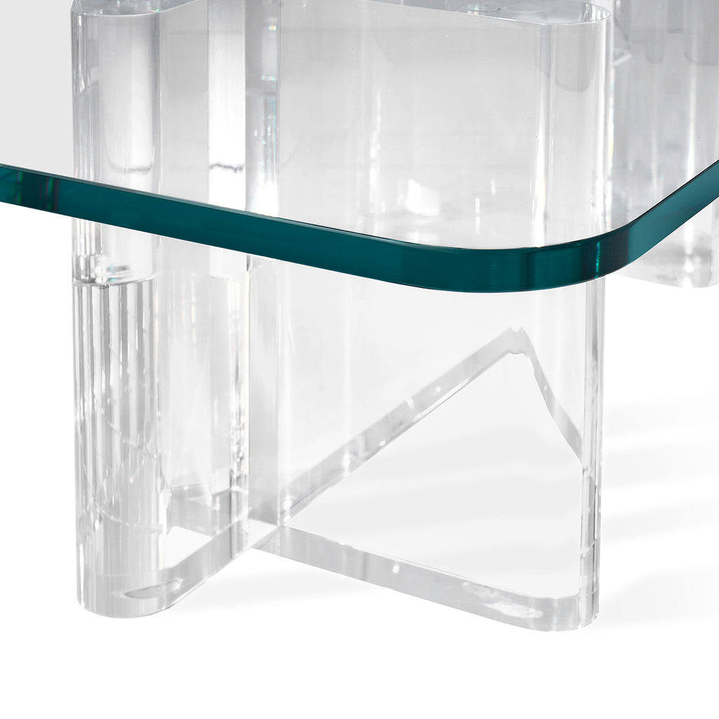 Versatile and flexible, the clear acrylic and crystal glass Naomi Cocktail Table works with any decor to add style to every living space.