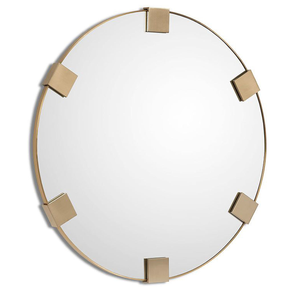 Evoking a clip frame, the Nippon Round Mirror makes a fabulous statement with its pairing of mirror and stainless steel finished in brushed brass.