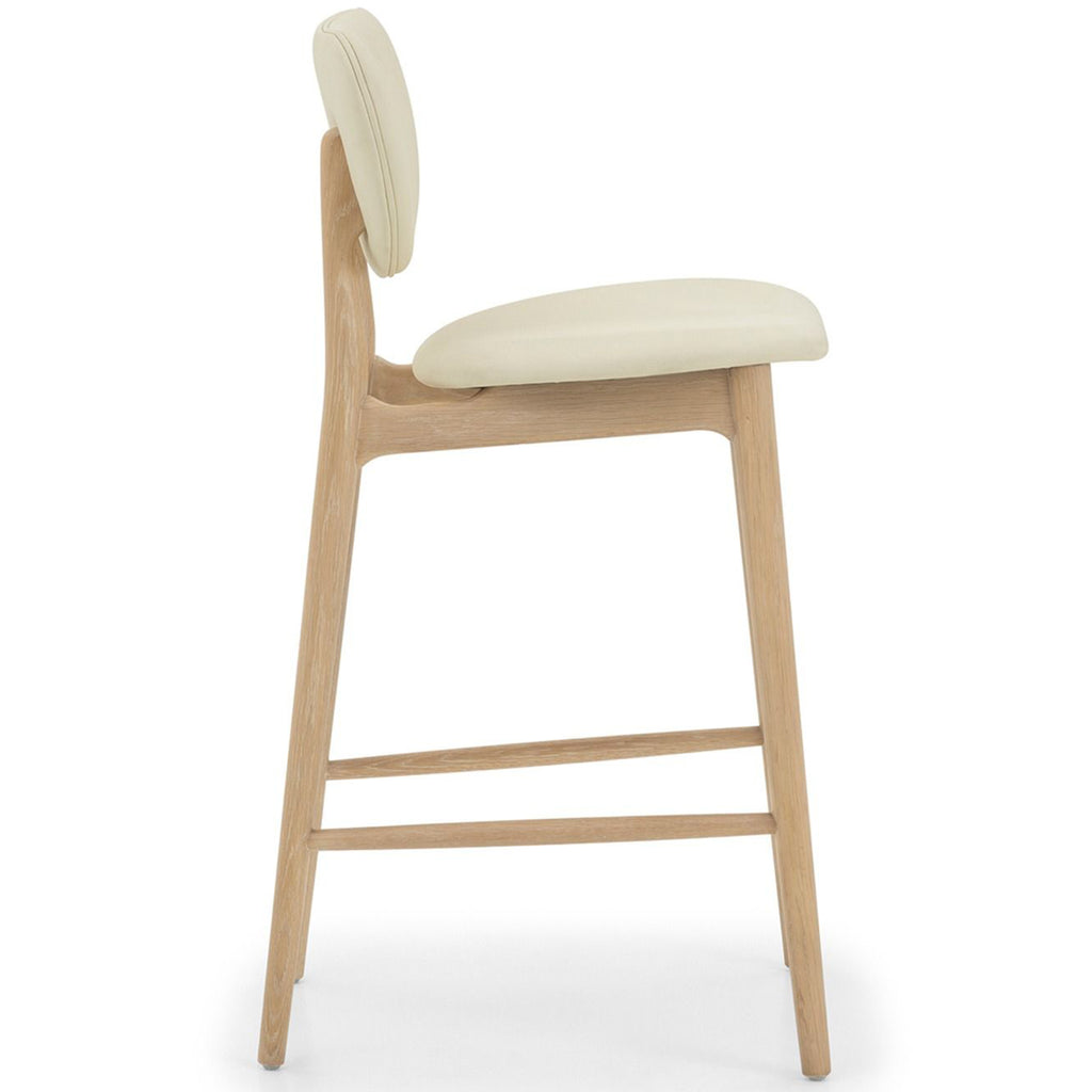 A fresh interpretation of a noted silhouette, the Stella Counter Stool features an oak frame paired with vegan leather upholstery or re-upholstered in a fabric of your own and a metal footrail.