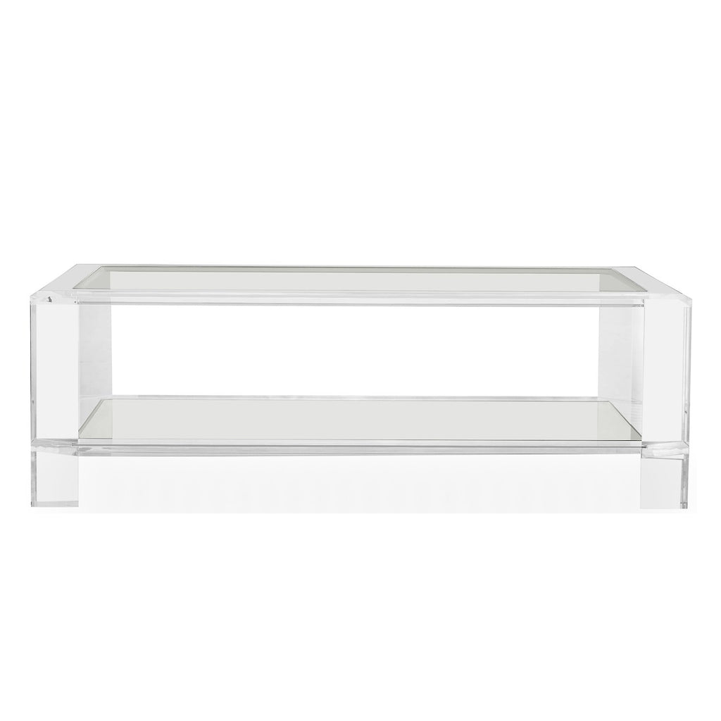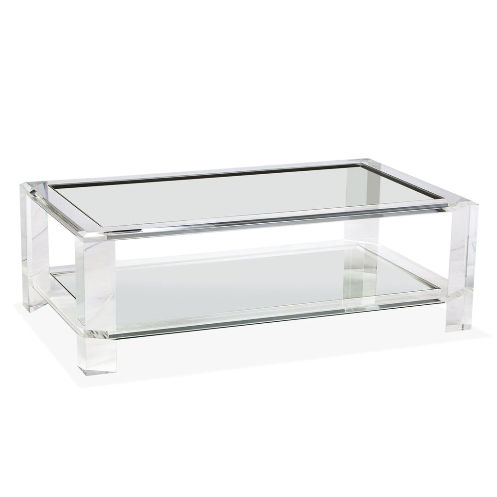 Interlude Home's worldly style brings what's now and next to the home with high fashion designed for everyday function. Acrylic and glass meet on the Surrey cocktail table. Effortlessly contemporary, this unique piece showcases its modern textures with simple, clean lines. Its neutral vibe makes it versatile for any room.