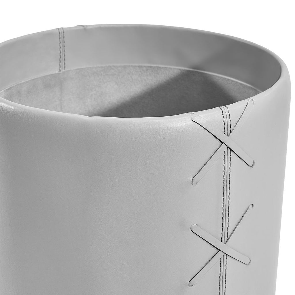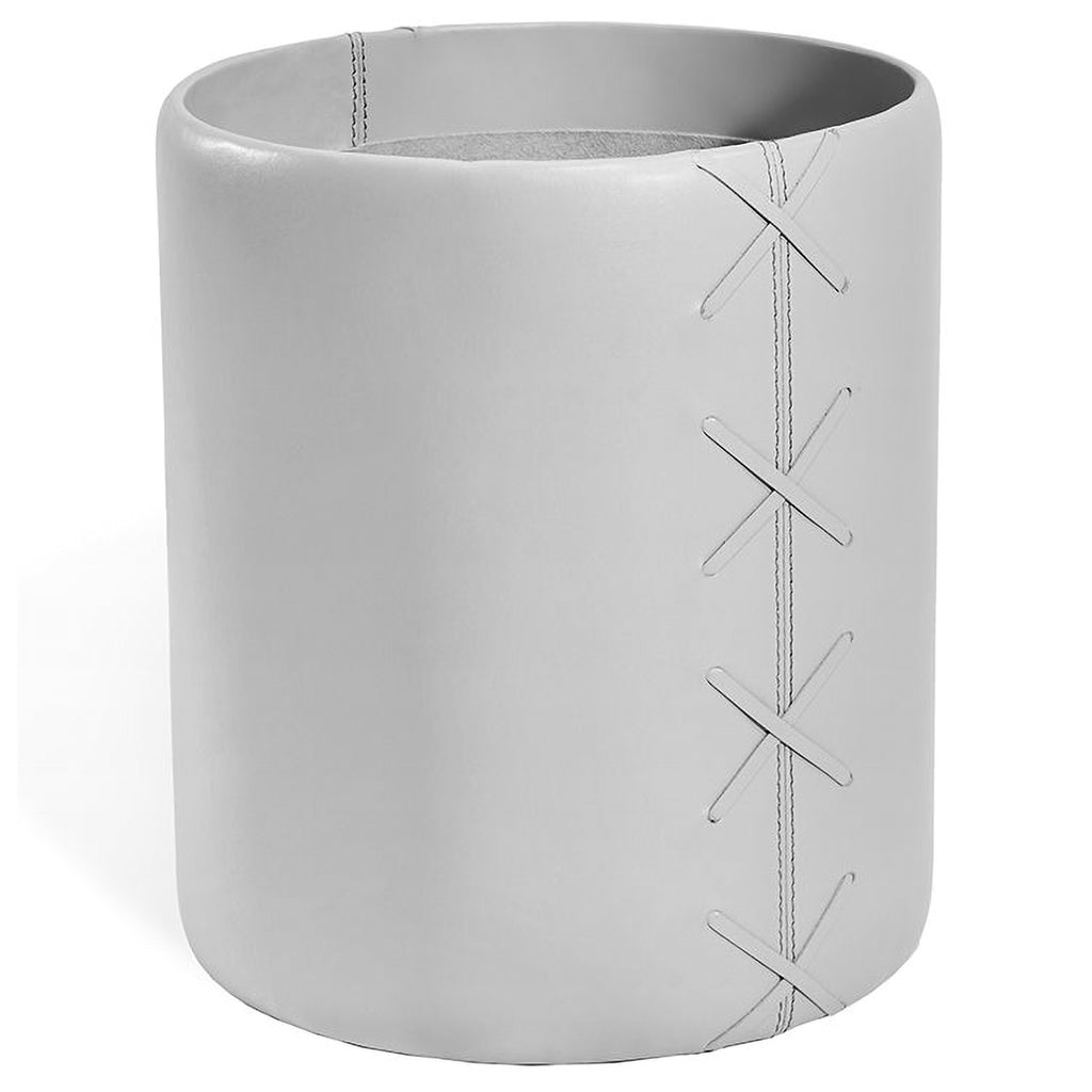 The light grey leather Xavier Wastebasket boasts eye-catching complementary stitching and officially proves that style and necessity can coexist fabulously. Genuine leather is a natural material. Variations in coloration and pattern are to be expected and add to the uniqueness and charm of each piece.