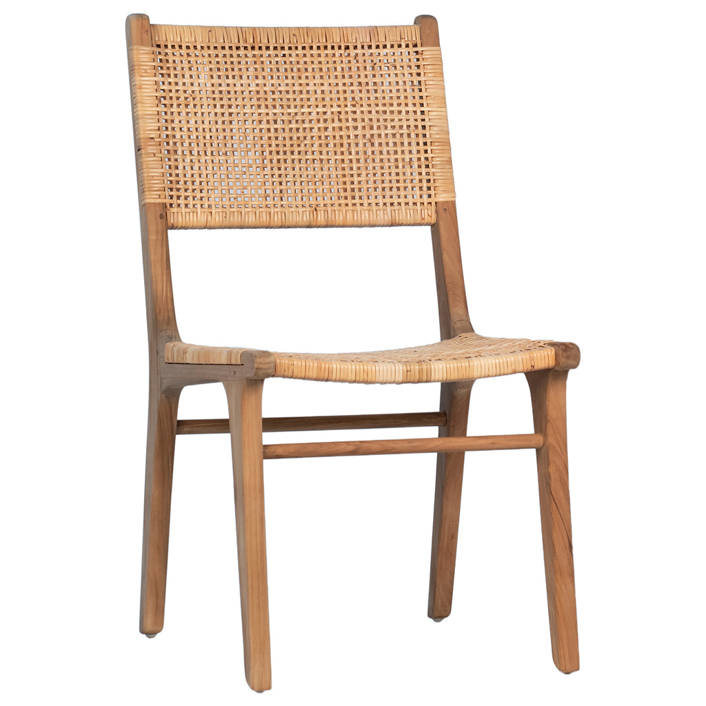 Clean lines and solid teak wood construction wrapped around in a meticulously crafted handwoven rattan. Showcasing a stunning natural finish, this dining chair will bring some serious style to your dining space. Works beautifully in coastal or organic modern designs.