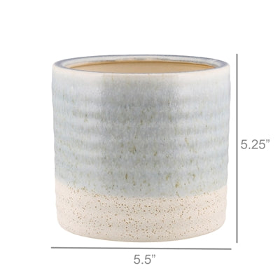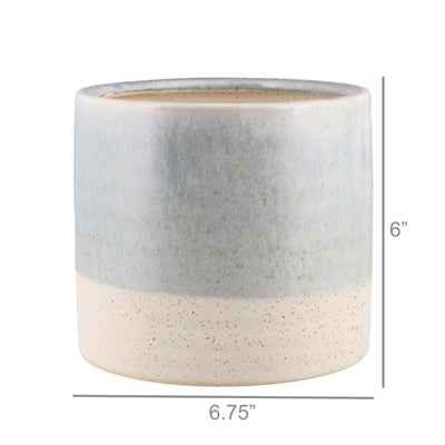 The union of warm white ceramic and a cool blue glaze are reminiscent of where the sand meets the sea in this versatile ceramic vessel.