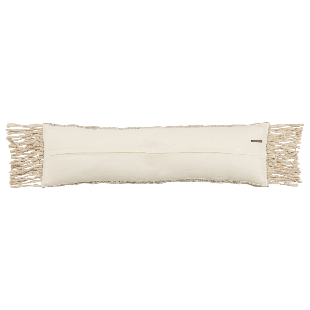 The Jaipur Angora pillow collection offers plush, soft texture and a modern vibe to any space. The Artos lumbar pillow features light neutral, woolen strands in ivory and beige, embellished by wrapped silver threadwork. The long, twisted tassels of this chic pillow lend an eclectic, global look to beds and sofas.