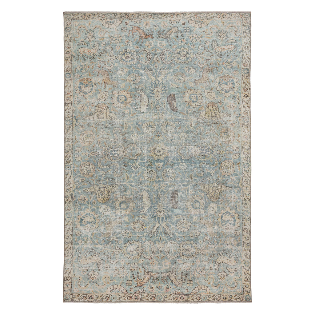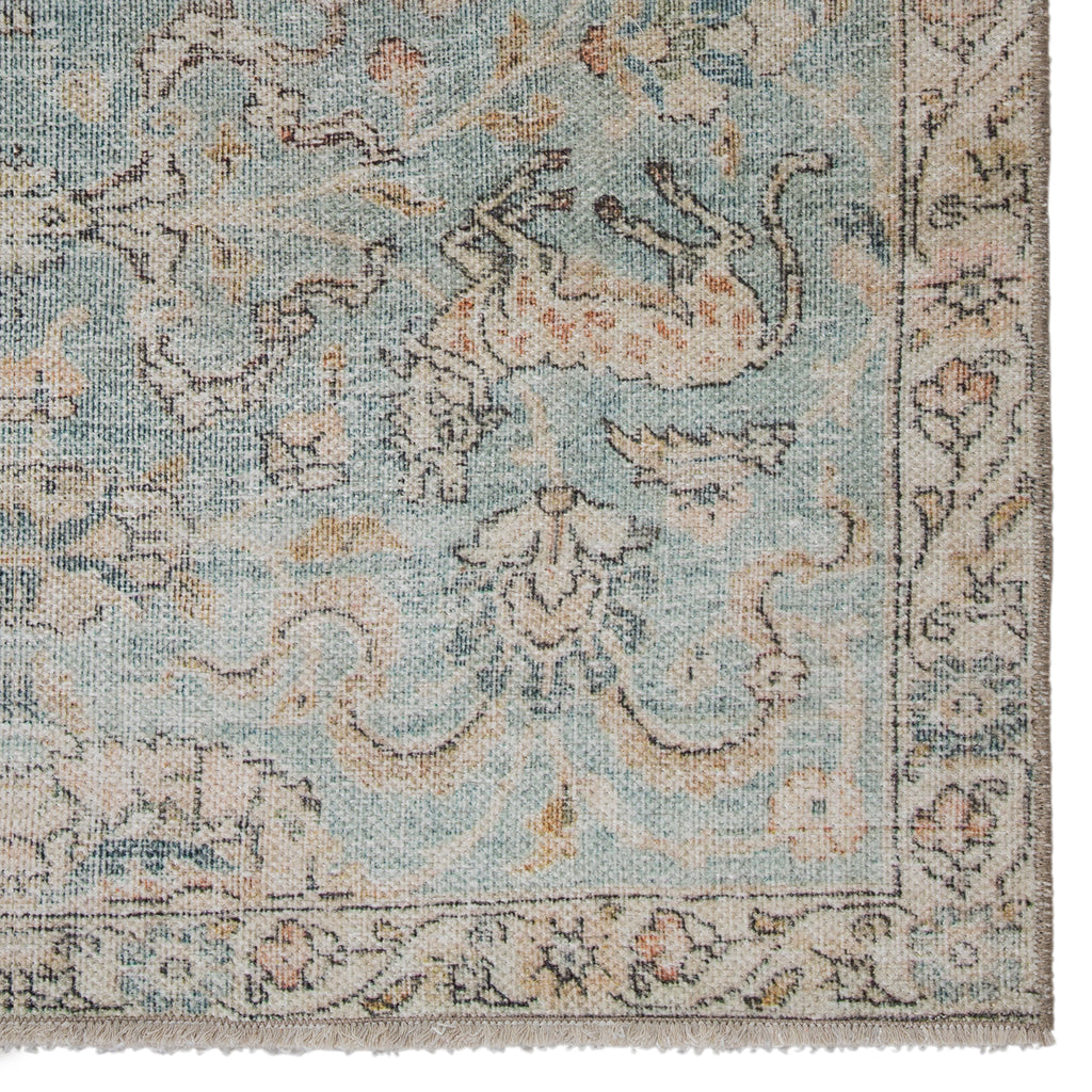 The Jaipur Boheme collection brings vintage inspiration to life with ornate, worldly designs and a timeless distress effect. The Stag area rug boasts an antique hunting motif with wildlife and fleurette details in deep blue, gold, and green. This zero-pile rug is made of cotton, polyester, and soft chenille for a flat, durable finish.