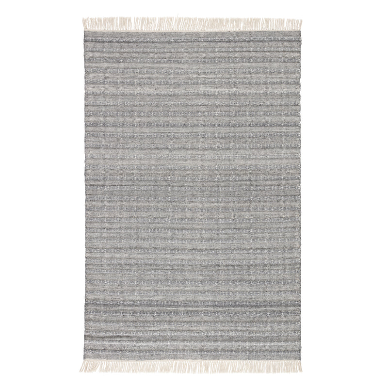 The handwoven Jaipur Castillo collection features a soft feel and relaxed, versatile style. The Torre area rug showcases a blend of light gray and cream tones for a grounding, neutral look. Crafted of PET yarn, or recycled plastic, this durable and textured rug brings warmth and inviting appeal to indoor and outdoor spaces.