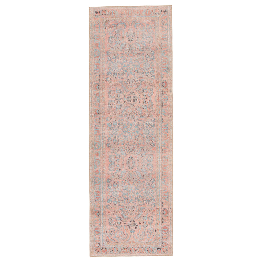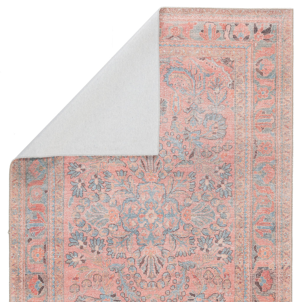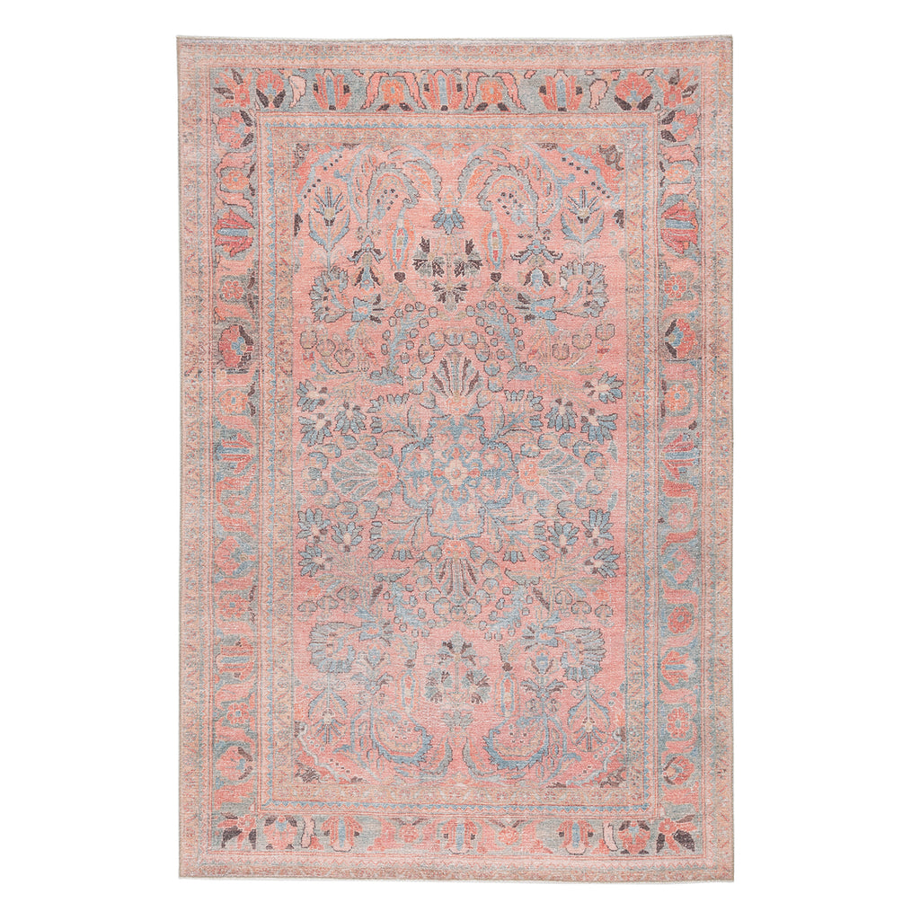 The Jaipur Kindred collection melds the timelessness of vintage designs with modern, livable style. The Pippa area rug boasts a whimsical medallion with floral accents and contemporary pink, sky blue, and gray colorway. This low-pile rug is made of soft polyester and features a one-of-a-kind antique rug digitally printed design.