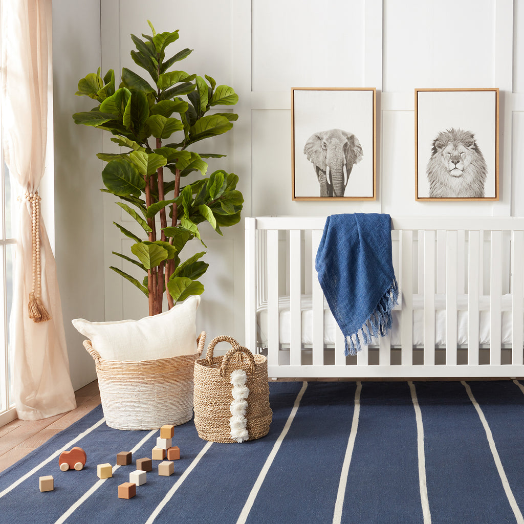 Relaxed and sophisticated in the same moment, the Jaipur Lanai collection is a chic assortment of nautical designs. The pin stripe Corbina area rug infuses both indoor and outdoor spaces with a classic colorway of deep blue and ivory. Hand woven of eco-friendly PET yarns, this durable rug is easy to clean and perfect for high-traffic areas.