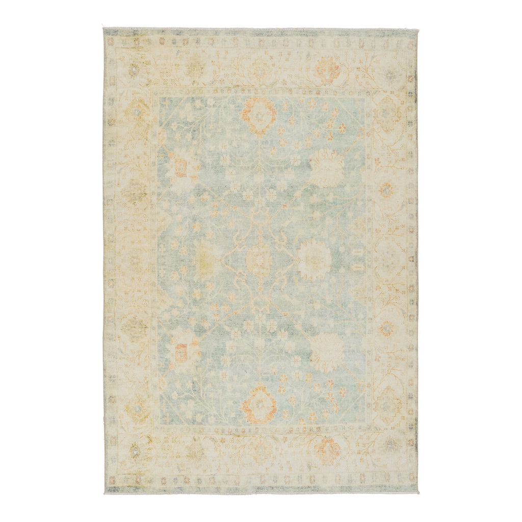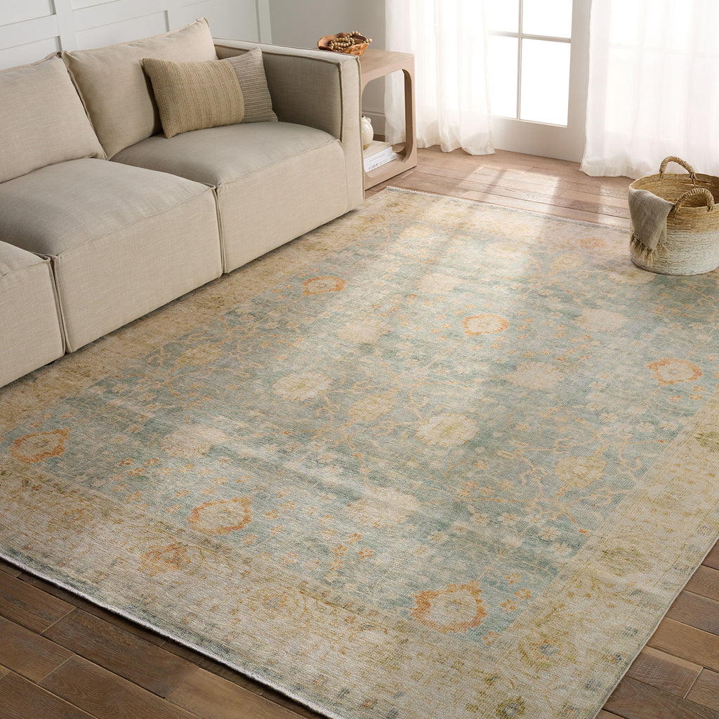 The Jaipur Living Boheme collection brings vintage inspiration to life with ornate, worldly designs and a timeless distress effect. The Lovato area rug boasts a Persian-inspired floral pattern, short fringe and detail-rich border in light blue, pastel green, yellow, orange, and cream colorway. This zero-pile rug is printed on cotton, polyester, and soft chenille for a flat, durable finish. Perfect for high and low trafficked areas of the home, this rug delights in bedrooms, halls, living areas, dining rooms, and entryways.