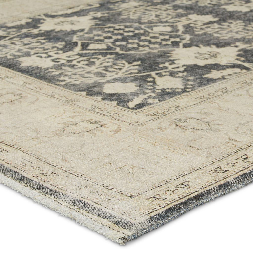 The Jaipur Living Boheme collection brings vintage inspiration to life with ornate, worldly designs and a timeless distress effect. The Pia area rug boasts a Persian-inspired center medallion, short fringe and detail-rich border in a navy, cream, gray, and pastel green colorway. This zero-pile rug is printed on cotton, polyester, and soft chenille for a flat, durable finish. Perfect for high and low trafficked areas of the home, this rug delights in bedrooms, halls, living areas, dining rooms, and entryways.