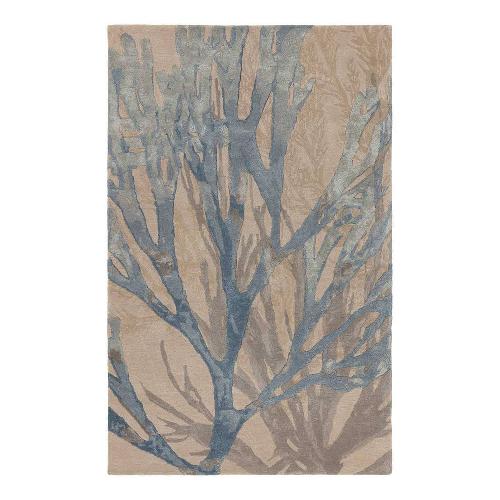 The modernized coastal impression of the luxurious Jaipur Living Delray collection anchors a room with serene, seaside-inspired hues and a stunning sheen. The Atoll design features sprawling coral in oceanic hues of blue, tan, subtle green, gray, and taupe. The plush, hand-tufted pile is soft to the touch due to the shiny viscose and gentle wool fibers. This indoor area rug best suits low traffic areas of the home such as bedrooms, formal living rooms, and formal dining rooms.