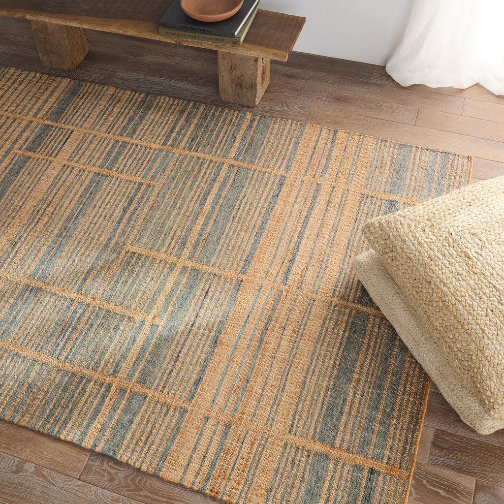 The Jaipur Living Dorada collection blends relaxed, warm style with effortless modernity. The flat-woven Ciana rug is crafted of jute and wool for a fine, soft foundation underfoot. The stripe pattern in a natural brown and blue colorway offers versatility to any contemporary home. The sturdy fibers create an accent piece perfect for high and low traffic spaces like entryways, halls, living rooms, and dining areas.
