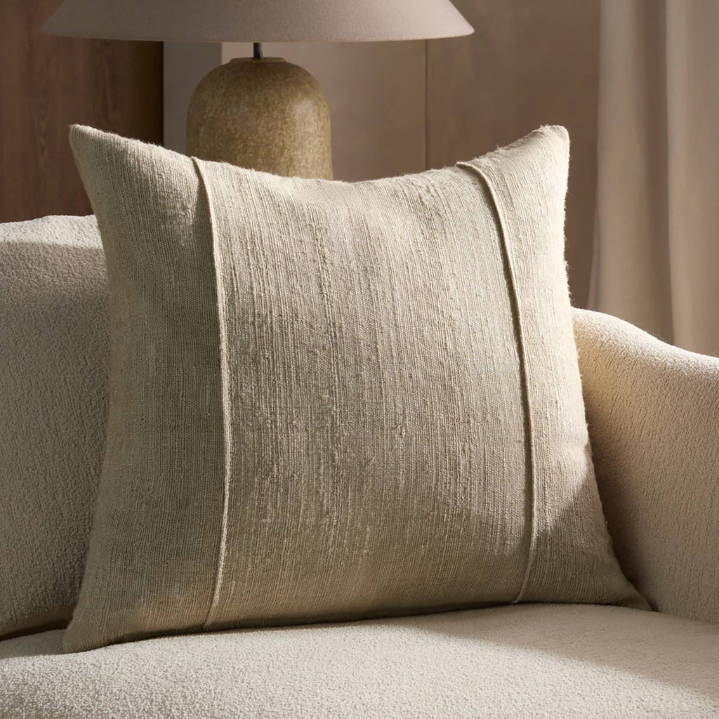 Made to work with any style, the Jaipur Liivng Emmer pillow features a simple yet sophisticated look. Featuring a square shape and cotton-viscose blend in a natural linen color, it easily matches existing decor while standing out for its natural finish, reminiscent of a wheat field.