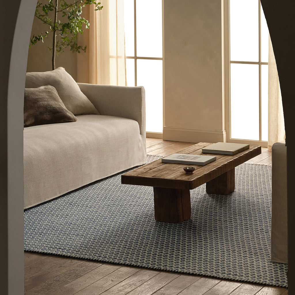 The Jaipur Living Enclave collection captures a refined yet laid-back charm with its meticulous details and 100% wool pile. The Pompano rug features a small-scale circular lattice design in a coastal-inspired blue to anchor modern country interiors. Its stain-resistant quality ensures it’s as easy to care for as it is elegant.