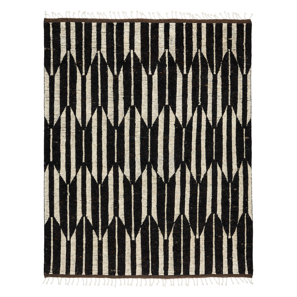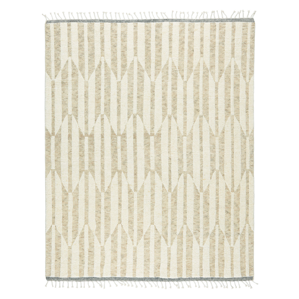 The Jaipur Living Keoka collections boasts a fresh take on classic Afghani hand-knotted textiles. The texture-rich wool pile features a ribbed construction that lends unique linear details to the dynamic geometric patterns. Braided fringe accents and a black, striped flatweave border add a dose of global flair.
