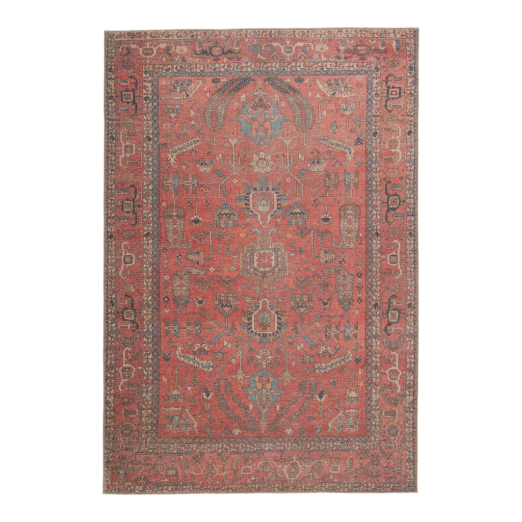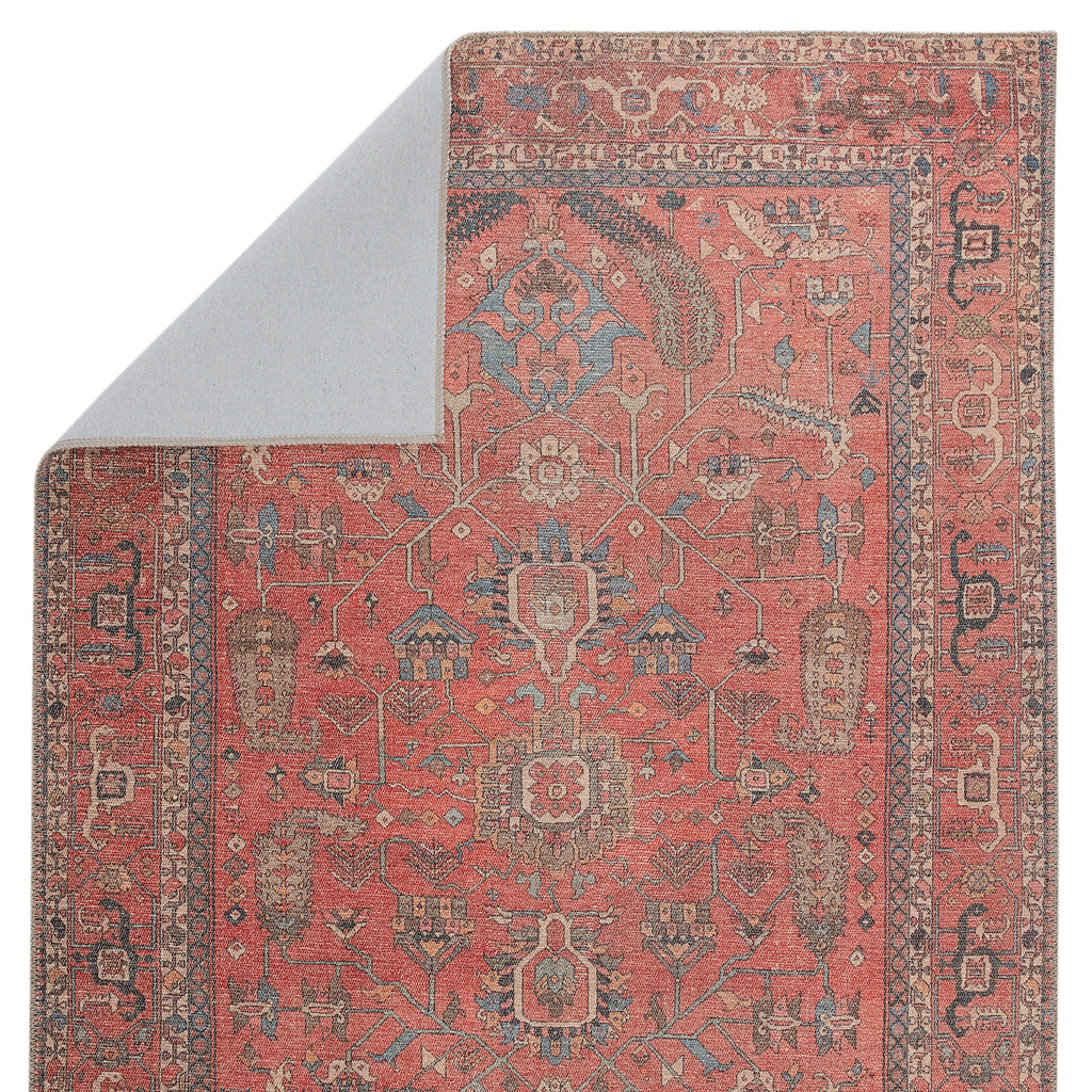The Jaipur Living Kindred collection melds the timelessness of vintage designs with modern, livable style. The Galina rug's vibrant brick red, terracotta, and blue tones ground spaces with luxe appeal and a classic center medallion motif. This low-pile rug is made of soft polyester and features a stunning, Old World-inspired digitally printed design.