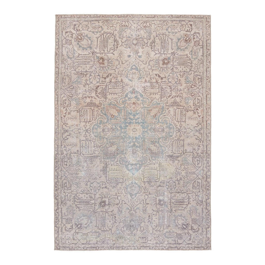 The Jaipur Living Kindred collection melds the timelessness of vintage designs with modern, livable style. In subdued tones of tan, beige, gray, and blue-green, the statement-making Parisa rug ground spaces with luxe appeal and a classic center medallion motif. This low-pile rug is made of soft polyester and features a stunning, Old World-inspired digitally printed design.