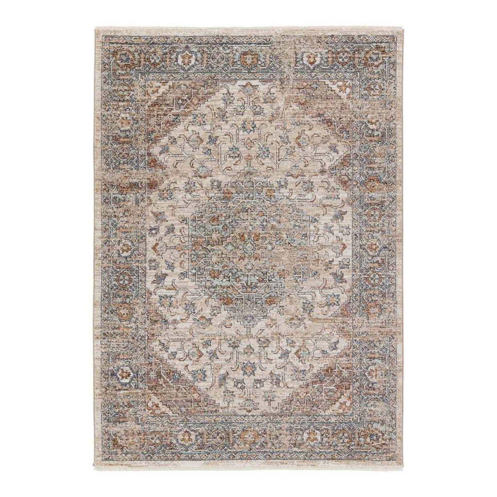 Inspired by the distressed perfection of antique textiles, the Jaipur Living Lark collection is warm and inviting with rich, updated hues. The updated traditional Heir area rug showcases an intricate medallion and border design paired with short, cream fringe. The floral details spring to life in hues of beige, blue, cream, orange, light brown, and hints of gray. This indoor rug thrives in high and low trafficked areas of the home such as living rooms, halls, entryways, bedrooms, and dining areas.