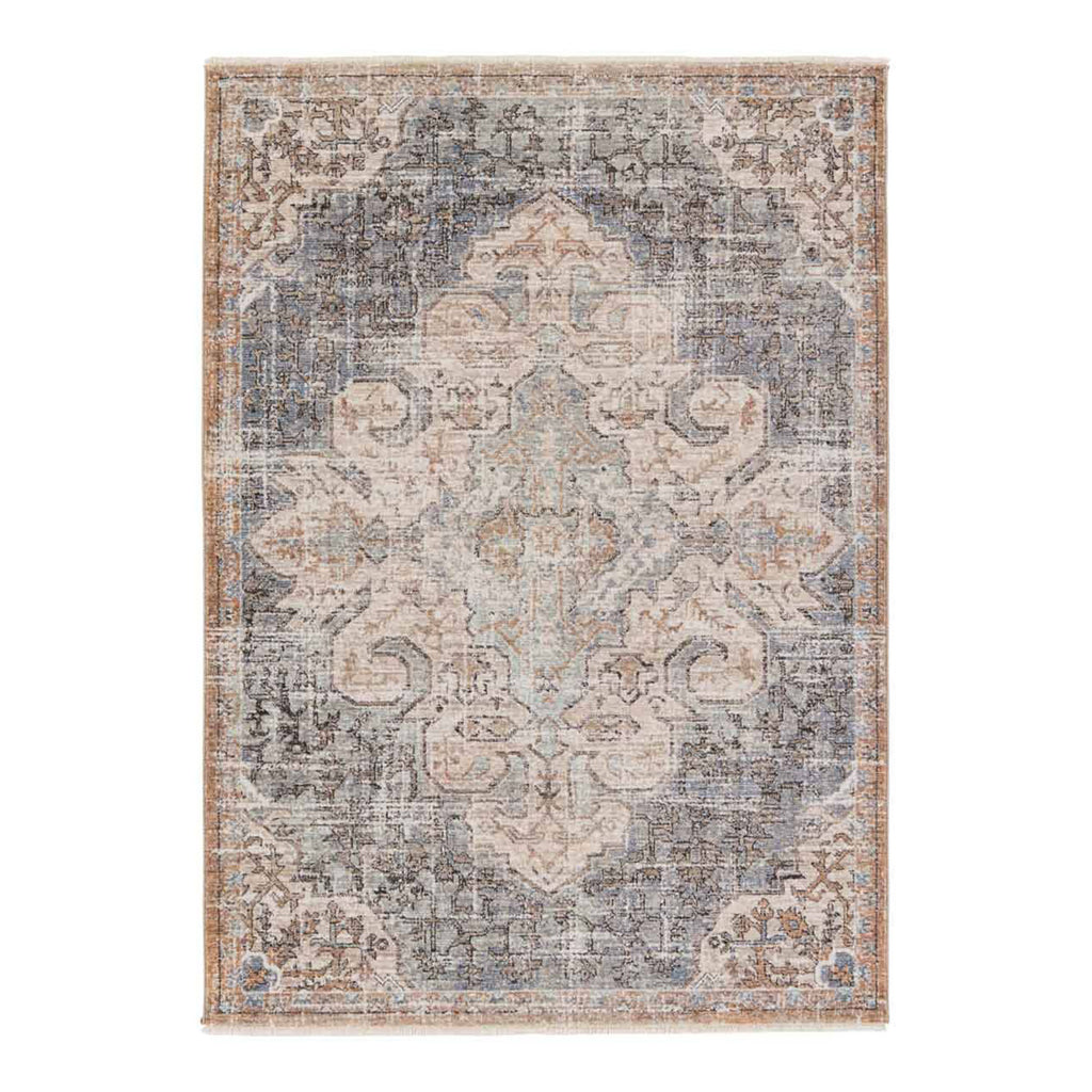 Inspired by the distressed perfection of antique textiles, the Jaipur Living Lark collection is warm and inviting with rich, updated hues. The updated traditional Lynette area rug showcases an intricate medallion and border design paired with short, cream fringe. The floral details spring to life in hues of tan, blue, gray, orange, and cream. This indoor rug thrives in high and low trafficked areas of the home such as living rooms, halls, entryways, bedrooms, and dining areas.