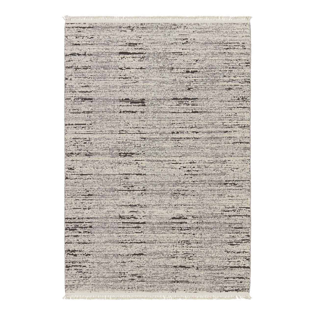 The Jaipur Living Lore collection introduces an assortment of modern Moroccan motifs and unique texture that grounds spaces with statement-making style. The Duna area rug features a distressed striped design, cut and looped pile, and cream, fringe. The contrasting neutral tones of blue, gray, and cream offer the perfect anchor to contemporary design. This indoor rug thrives in medium and low traffic spaces of the home such as bedrooms, dining areas, formal living rooms, and guest areas.