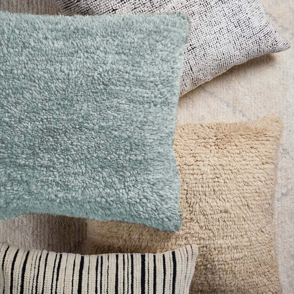 The hand-knotted Jaipur Living Montane collection imbues spaces with modern Moroccan vibes and high-quality craftsmanship. This richly textured assortment of pillows features premium wool and silk blended fibers and an exceptional Persian knot quality. The shag Jardine pillow delights in a cozy cream colorway, creating an easy-to-decorate-with accent piece.