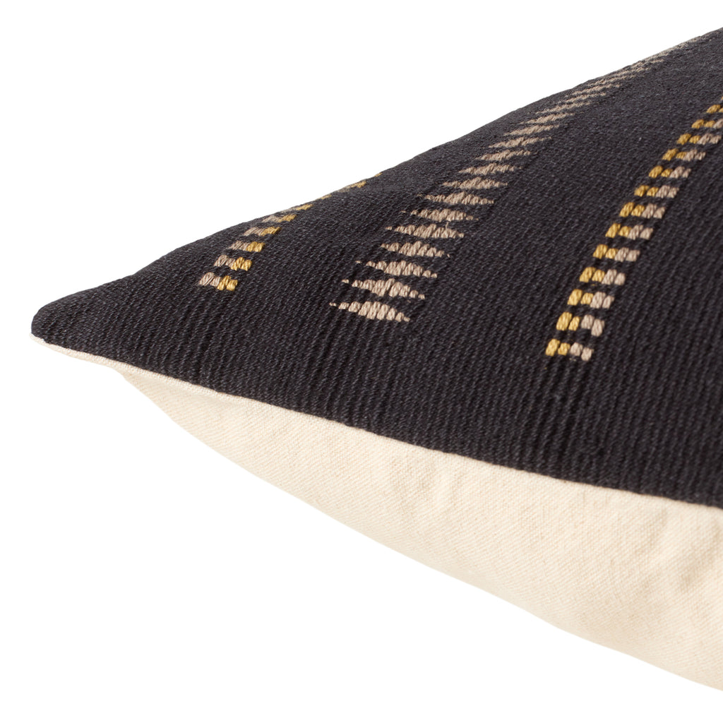 Handmade by weavers in Nagaland, India, the Jaipur Living Nagaland collection showcases the traditional loin-loom techniques of the indigenous tribes of the region. The artisan-made Dzukou throw pillow effortlessly combines heritage-rich tribal and stripe patterns with a black, taupe, and gold colorway for a stunning statement in any space. Crafted of soft, finely woven cotton, this pillow brings the global art of Naga textiles to the modern home.