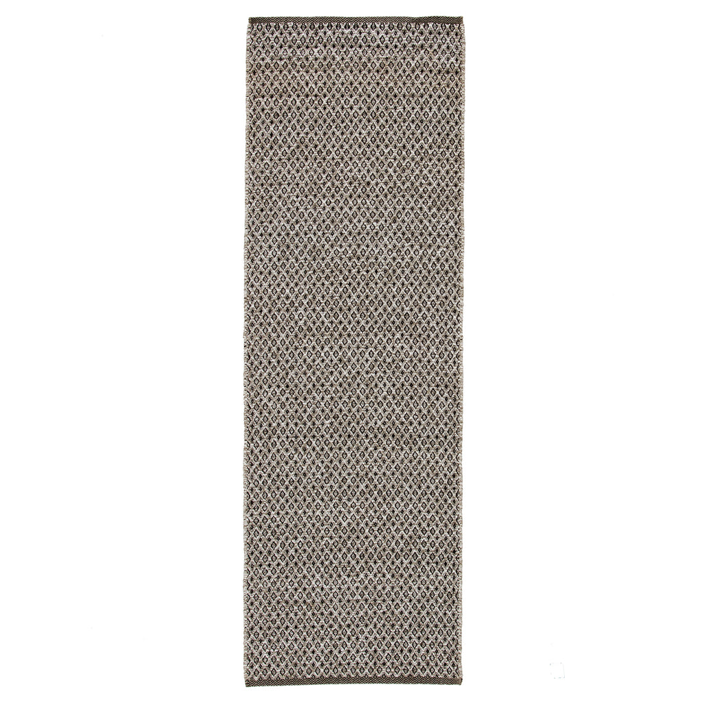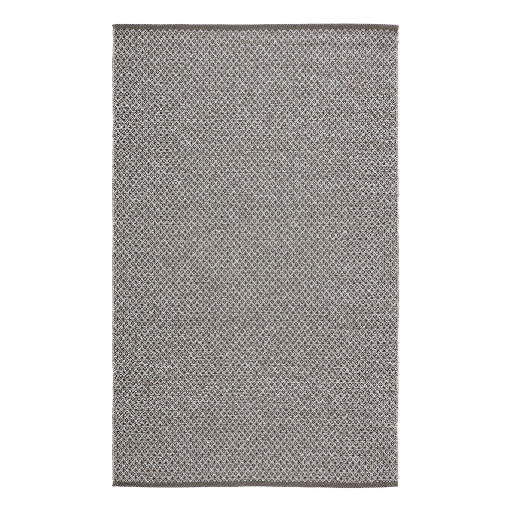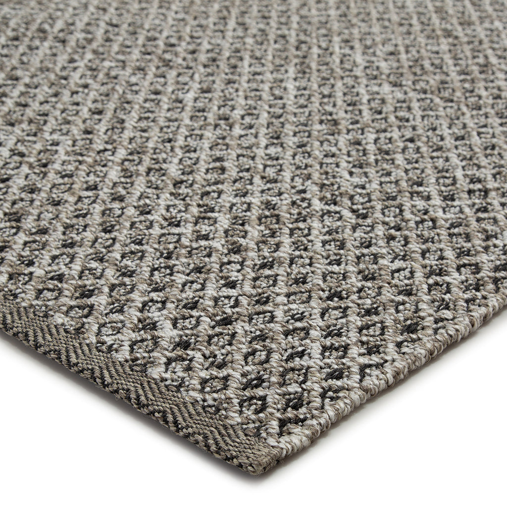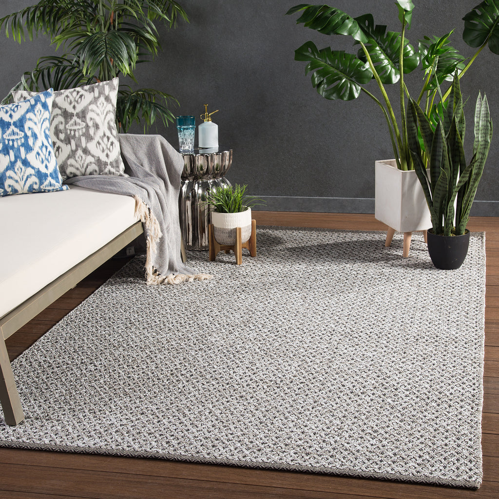 This boldly textured indoor or outdoor area rug offers a light-hued accent to patios and foyers alike. Easy to clean and durable with a weather-resistant polypropylene construction, this cool white and black layer boasts a woven diamond design for a striking punch of pattern.