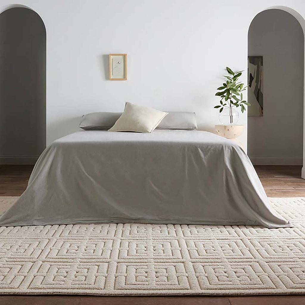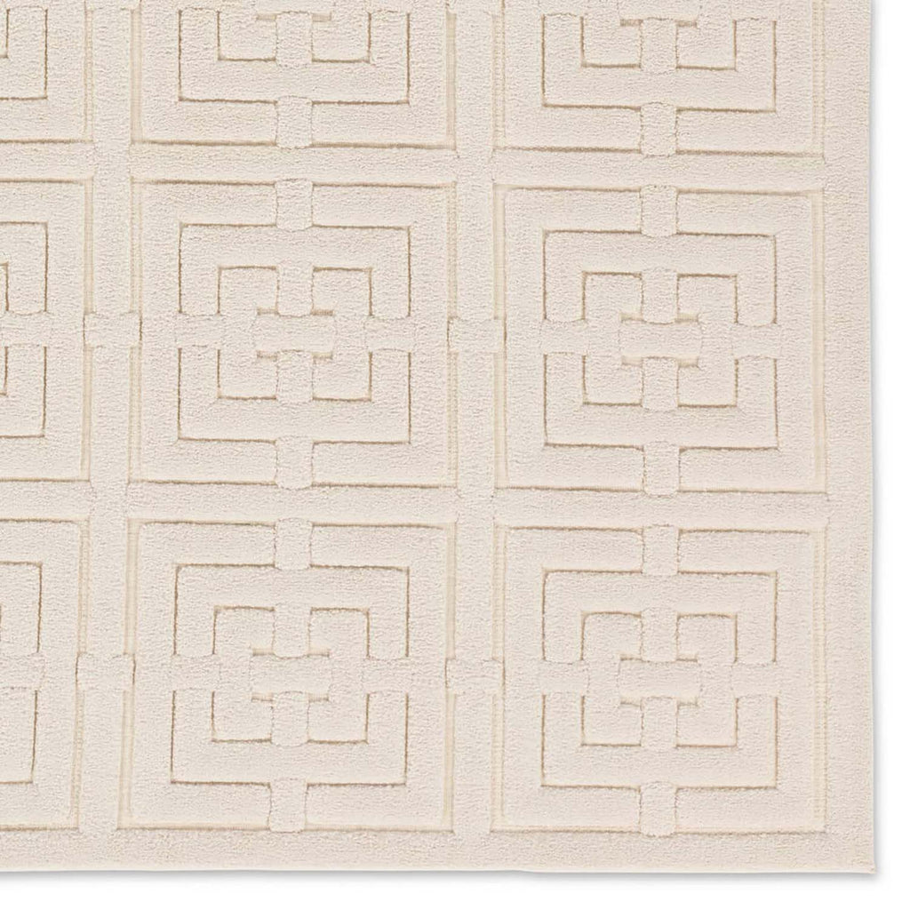 The Jaipur Living Petros collection features a lavishly soft feel and unique high-low pile that suggests stunning movement and cloud-like plushness, providing the perfect soft landing and coveted texture to a space. This collection is impressively versatile with an inviting cream colorway to complement an array of styles. The Marvelle design features a modern tile design, created with high-low pile for notable texture. Crafted in Turkey with a polyester and chenille blend, this plush area rug thrives in low traffic spaces of the home such as bedrooms and formal living rooms.