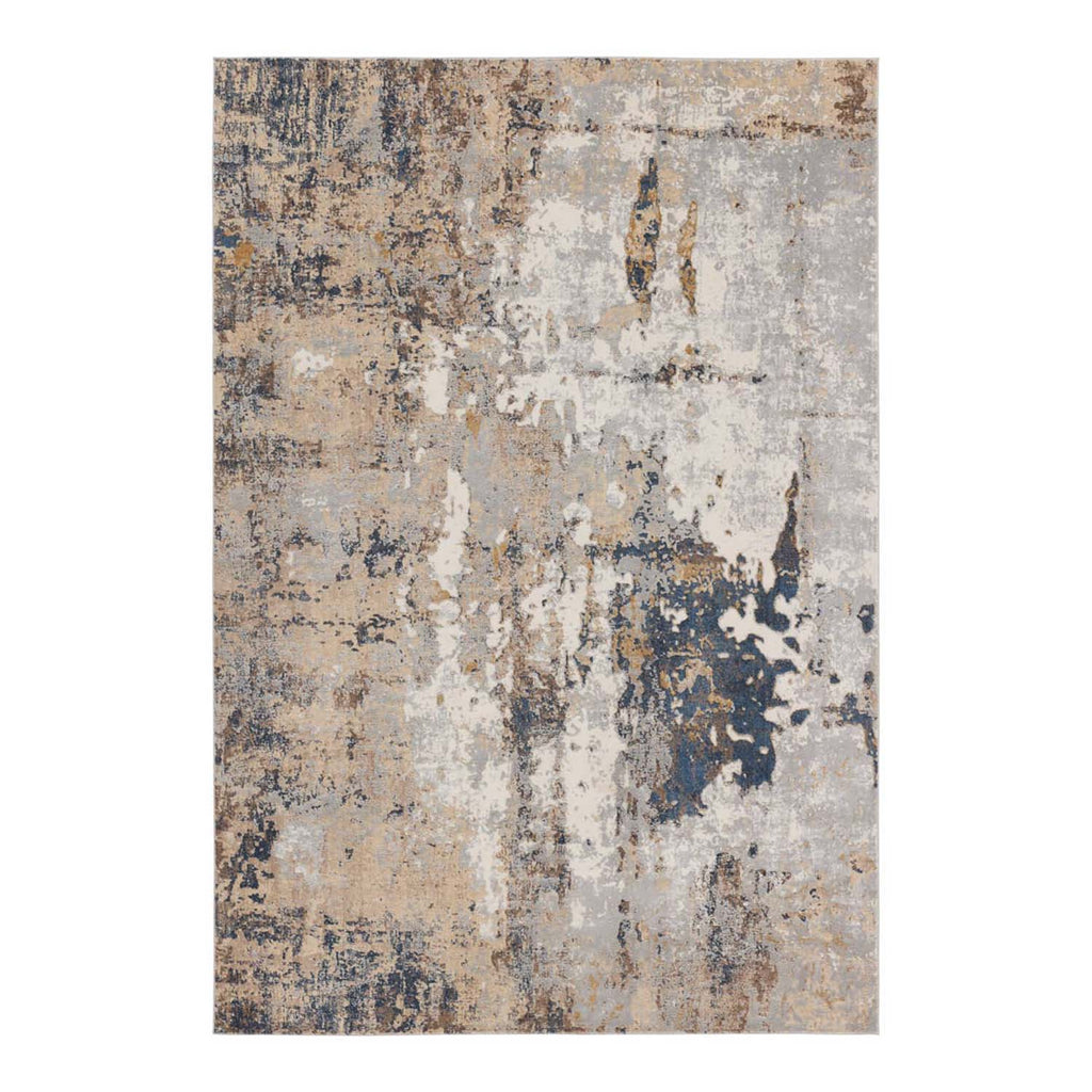 Completely modern in both style and construction, this innovative power-loomed rug features space-dyed polyester-viscose blend and a rich, textural appeal with high-low pile. Earthen-inspired abstract designs in mineral tones offer effortless versatility to contemporary rooms. The incredibly soft Constanze showcases a distressed, abstract pattern in hues of silver, navy, cream, and tan that provide a lustrous finish. Perfectly suited for low traffic areas of the home, this rug perfects bedrooms, formal dining rooms, and formal living rooms.