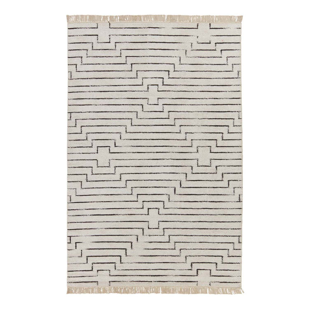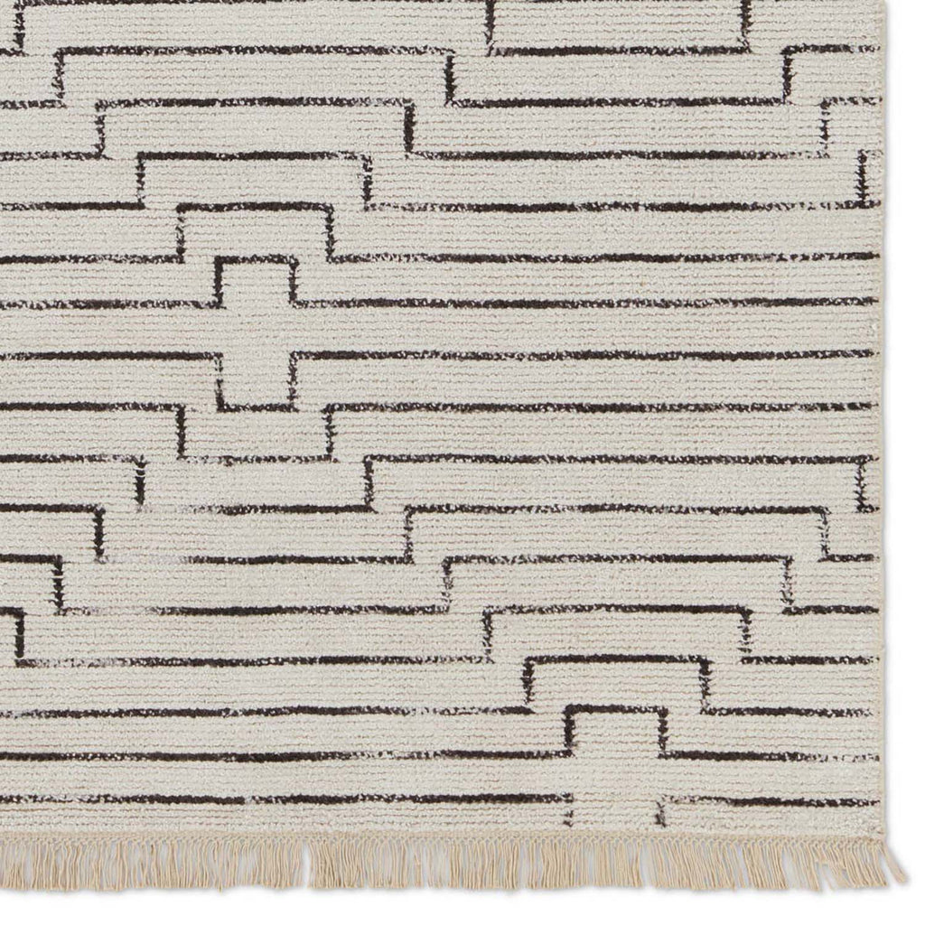 This modern hand-loomed rug enriches spaces with bold geometric patterning and a temptingly soft feel. Texture-rich and captivating in sleek spaces, this accent showcases a graphic linear design in a classic black and white colorway.