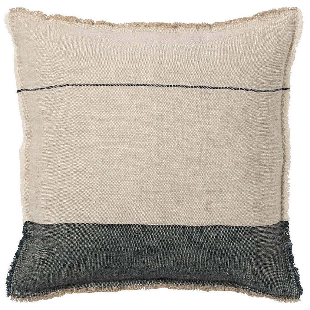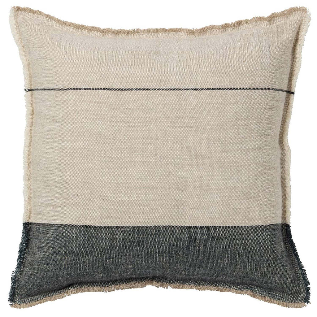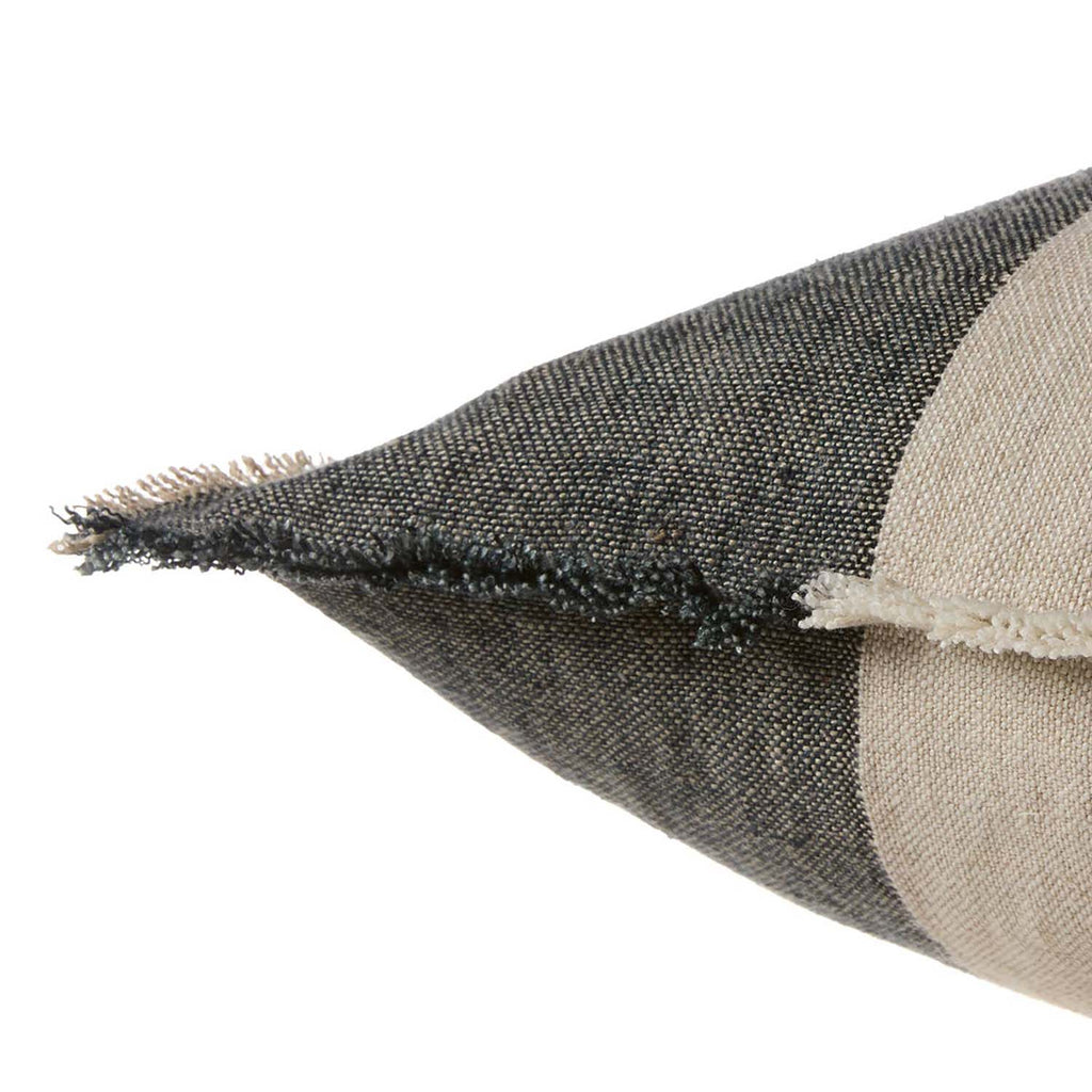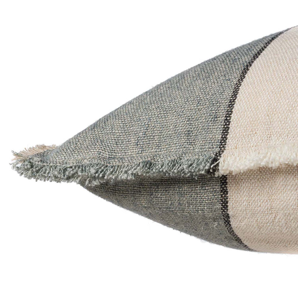 The Jaipur Living Tanzy pillow collection boasts an assortment of earthy tones and simple patterns for cozy, inviting looks that complement any style. The reversable Morrigan throw pillow features a striped and solid pattern in a contemporary gray and slate colorway. The linen cover and cream fringe provide a comforting global feel that perfects indoor spaces such as sitting rooms, living areas, and bedrooms alike.