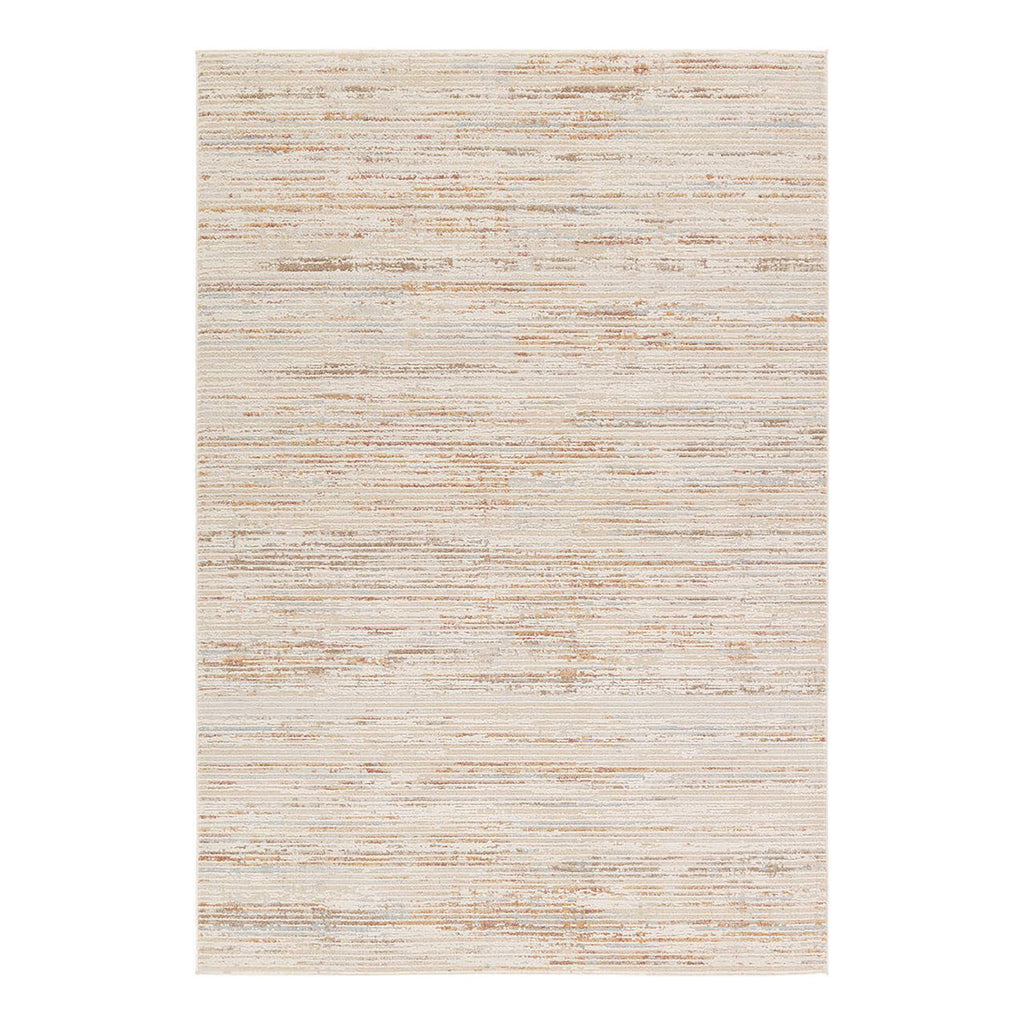 From ethereal abstract motifs to elegant scrolling florals, the Jaipur Living Thalia collection boasts a soft, tonal touch that complements an array of interior styles. The distressed, striped design of the Oriel area rug pairs effortlessly with the beige, cream, terracotta, light blue, and taupe colorway. Both water and stain-resistant, the high-low polyester and polypropylene fibers are easy to clean while maintaining a plush feel underfoot. This power loomed piece can endure high traffic areas, children, and pets, creating a perfect accent for any modern home.