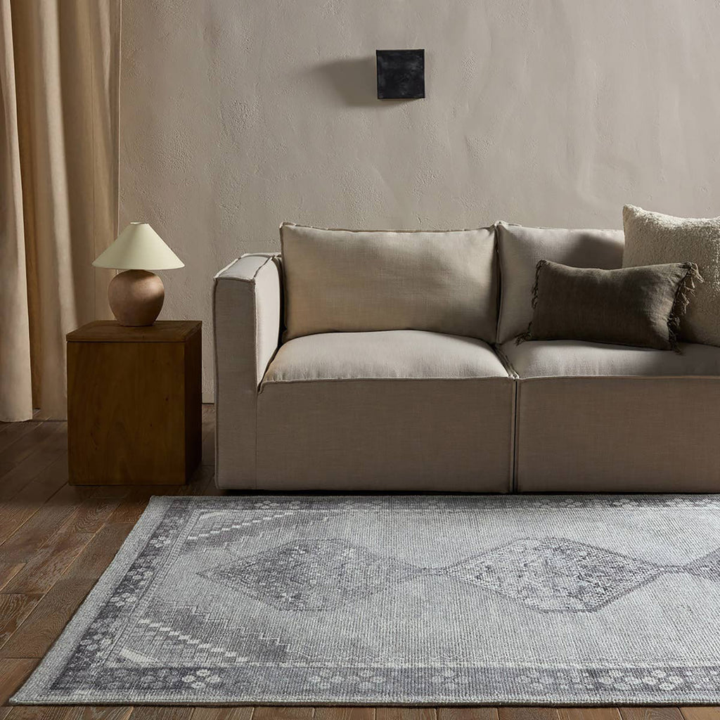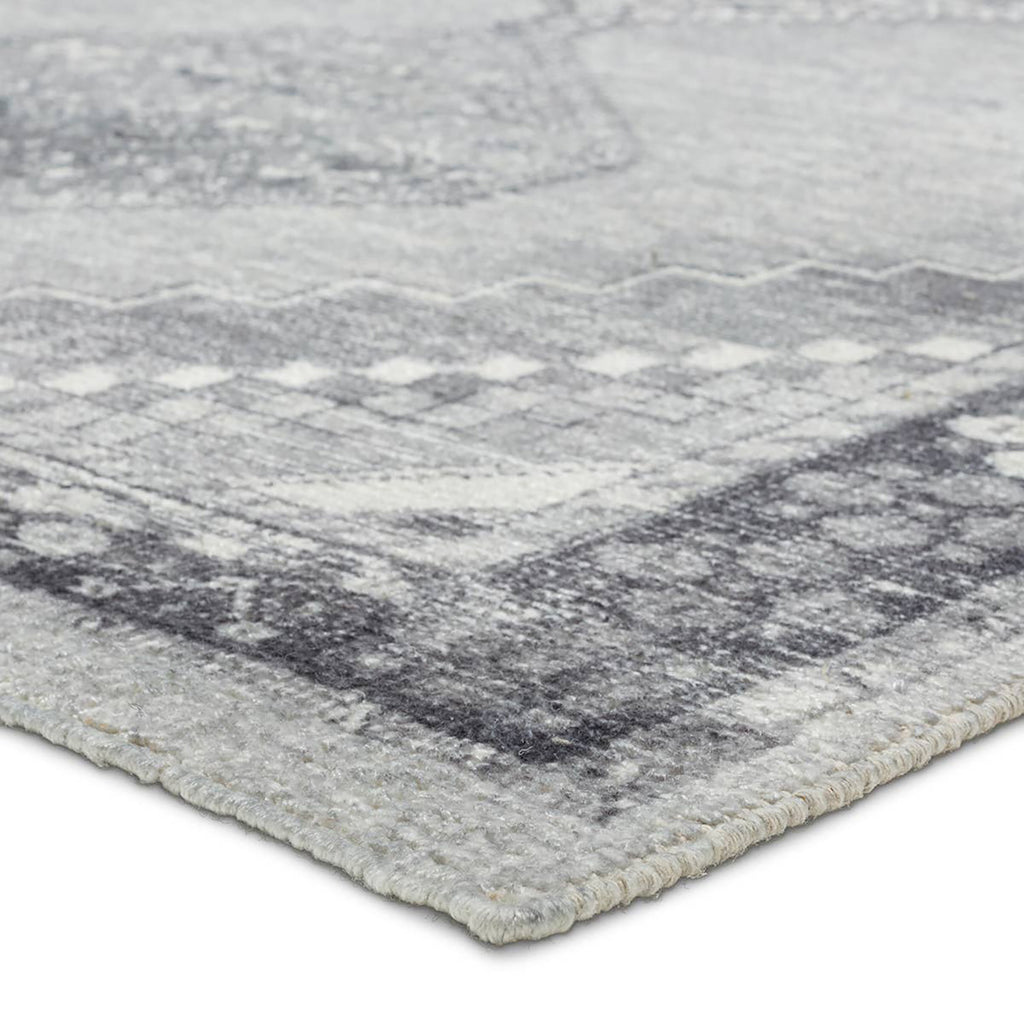 Nostalgic medallion motifs with a modern reinterpretation. The Jaipur Living Theo collection features a vintage-inspired design complemented by rich yet distressed shades of blue and gray. A digital print is layered on a handwoven base, offering durability and easy care, with a luxe, high-end look.