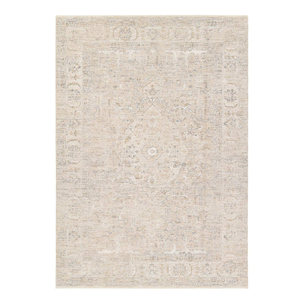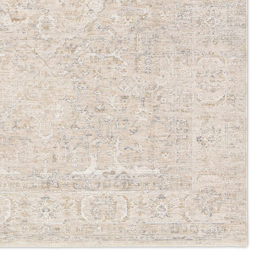 Elegant and classic, the Jaipur Living Aslan design presents a largely sought-after Tabriz-inspired pattern in a durable, powerloomed construction. The beautiful tan and gray medallion pattern effortlessly elevates any medium-traffic indoor setting. Space-dyed polyester introduces subtle, intriguing color variation, while the cross-woven fringe detail adds a touch of texture and visual interest. With a soft, velvety feel that’s easy to care for, here’s refined living made easy.