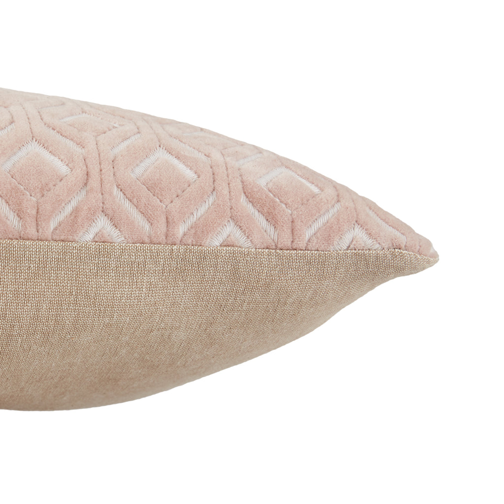 Soft and structured, the Nouveau collection blends Art Deco details and texture-building embroidery that is easy to mix and match with any style. The Colinet pillow boasts an embroidered diamond lattice design on the cotton velvet front.