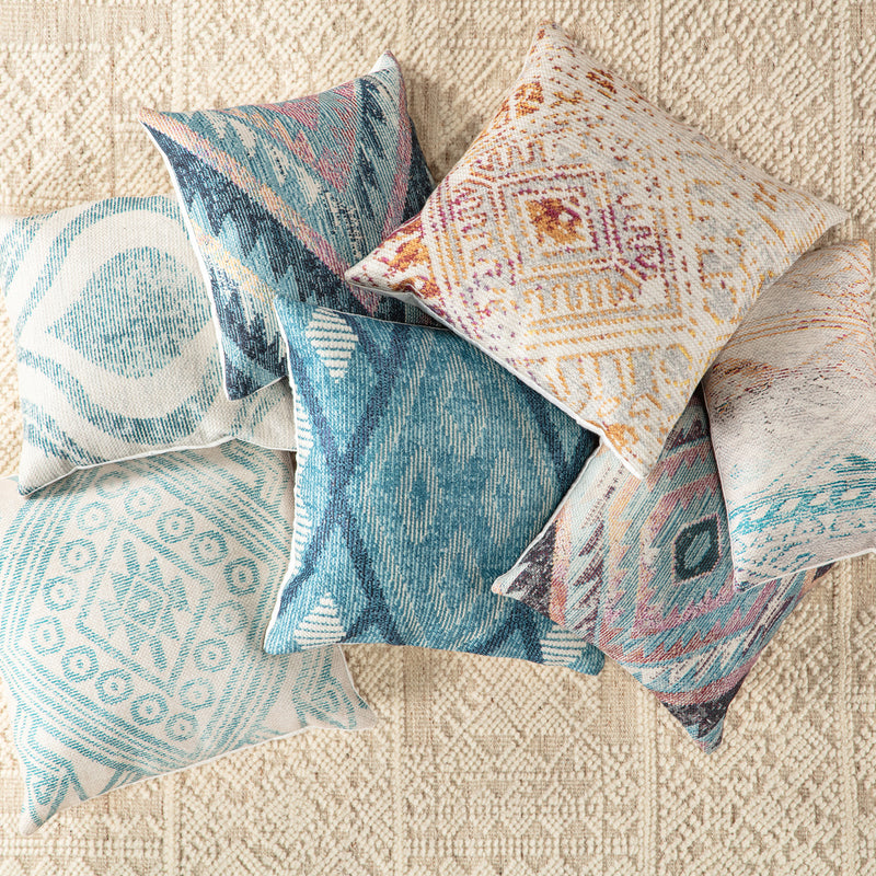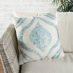 Contemporary pattern play and vibrant colors lend Nikki Chu's Groove pillow collection a whimsical, boho vibe. The jaipur Cymbal pillow boasts a bright teal and cream retro-inspired motif and soft, durable feel. Perfect for indoor and outdoor spaces, this accent is made of easy-clean polyester and features a subtle, luxe sheen.