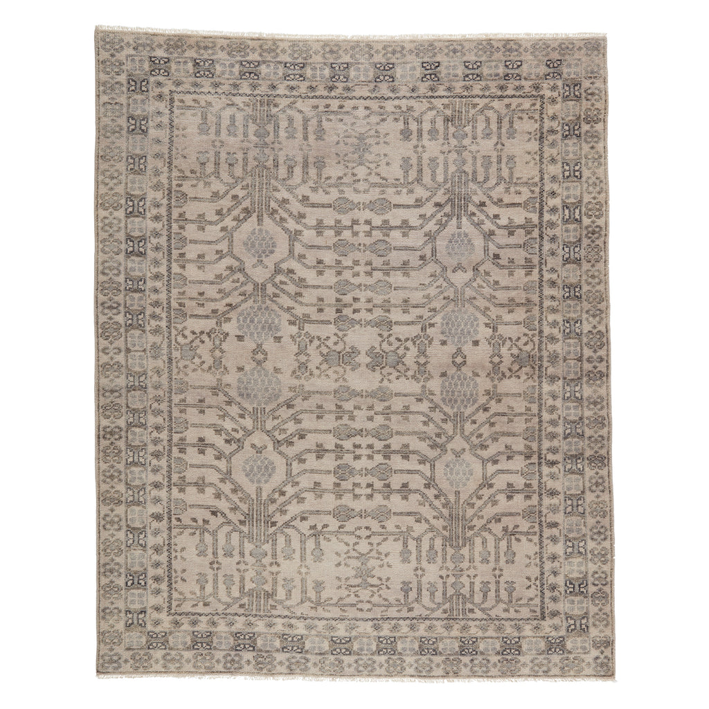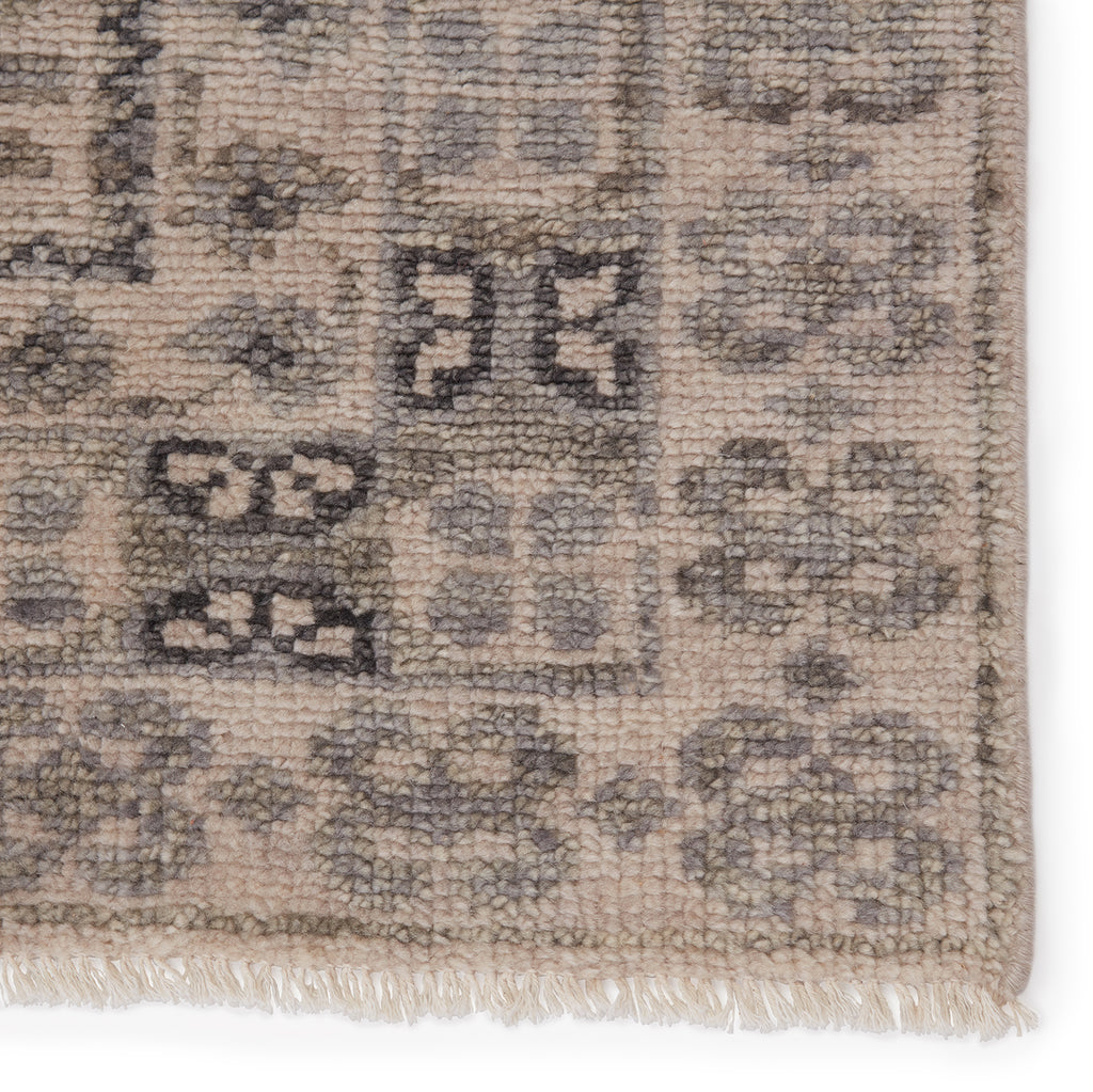 The Jaipur Salinas collection is punctuated by traditional, intricate details and a soft, hand-knotted wool construction. The neutral Cosimo area rug makes a transitional statement with grounding hues and Kotan-inspired motifs. This durable, artisan-made rug features a border detail and floral accents in a tonal gray colorway.