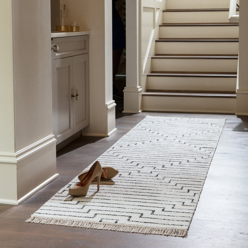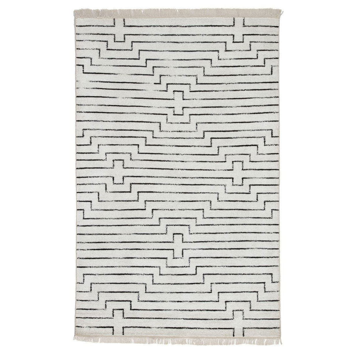 Intricate and rich with detail, the Jaipur Revel collection revamps traditional motifs for an incredible assortment of luxe yet durable styles. Unique and captivating, the Faizan rug makes a global statement with an ornate tribal and border design. This power-loomed polypropylene and polyester rug boasts stylish contrast with a black and deep blue pattern on a cream ground.