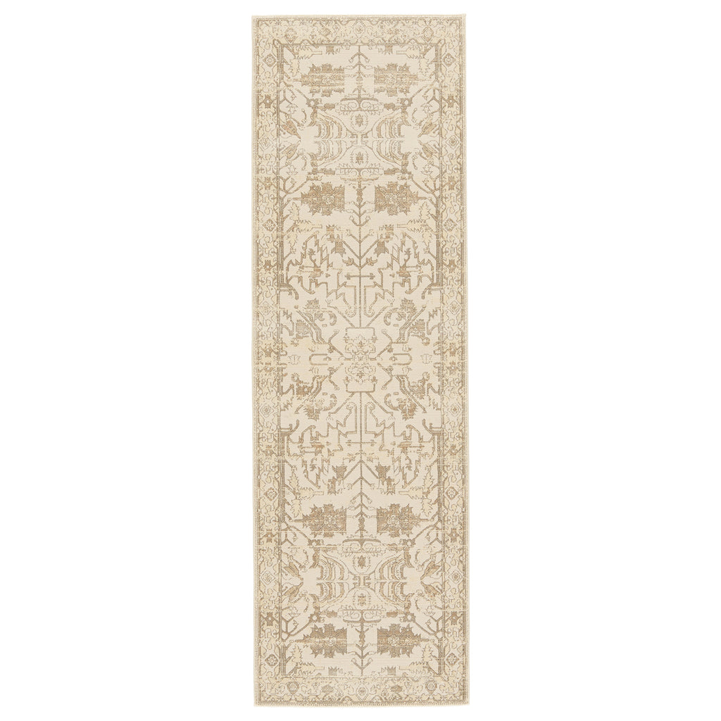 The elegant Vienne collection showcases the on-trend blanc de blanc look for an effortless and luxuriously vintage statement. The Valentin rug boasts a subtly distressed botanical motif in light tones of cream, taupe, and light gray, with accents of metallic silver and gold. Soft and lustrous, this chameleon-like design emulates the timeless style of a Turkish hand-knotted rug, but in an accessible polyester and viscose power-loomed quality.