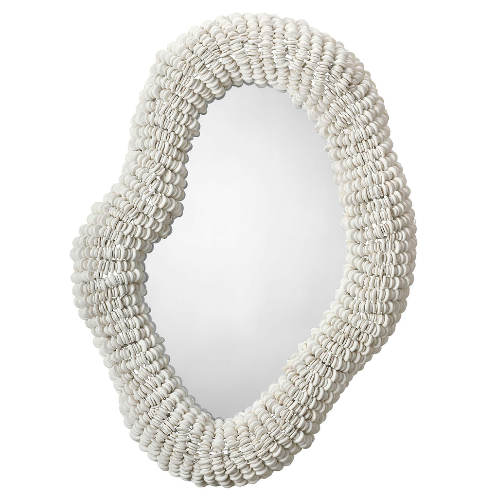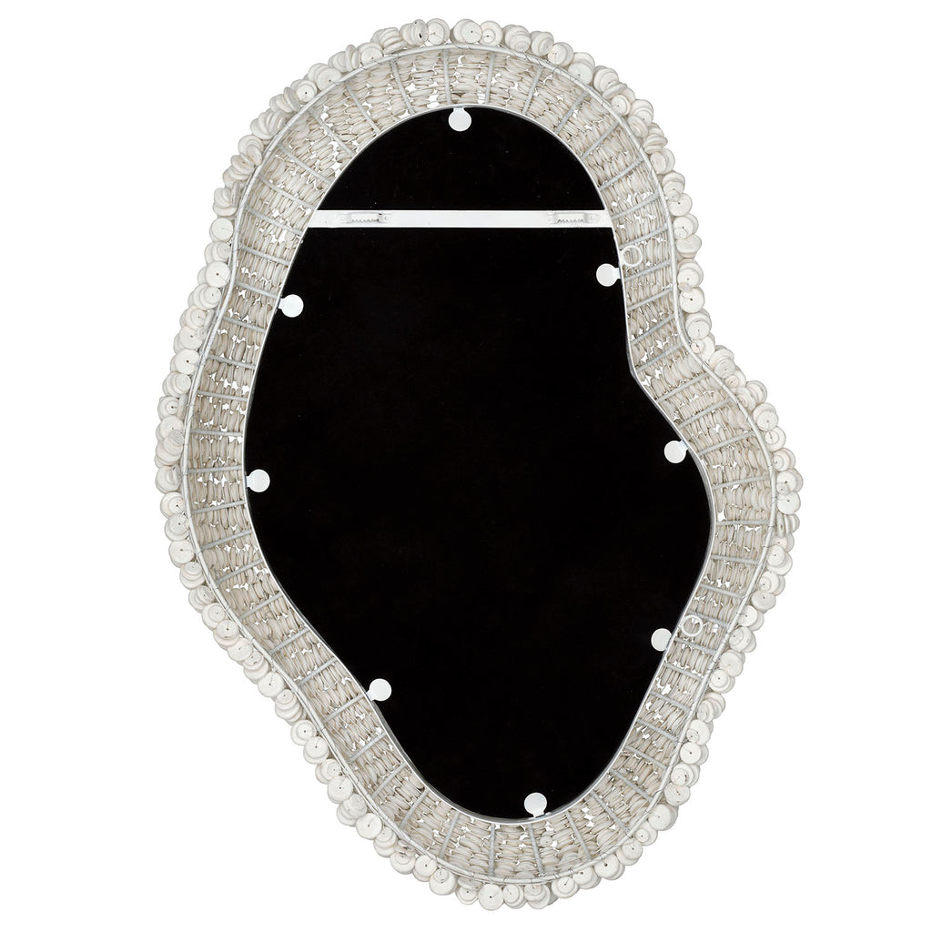 Hand-carved mango and acacia wood beads, each with a soft, shell-like sheen, delicately frame this mirror’s fluid shape. Every detail reflects the artisan’s touch, resulting in subtle variation and natural warmth. Whether hung vertically or horizontally, it brings light, movement, and artistry to hallways, bedrooms, or tranquil living spaces. A perfect balance of natural materials and handcrafted design, it radiates both serenity and texture.