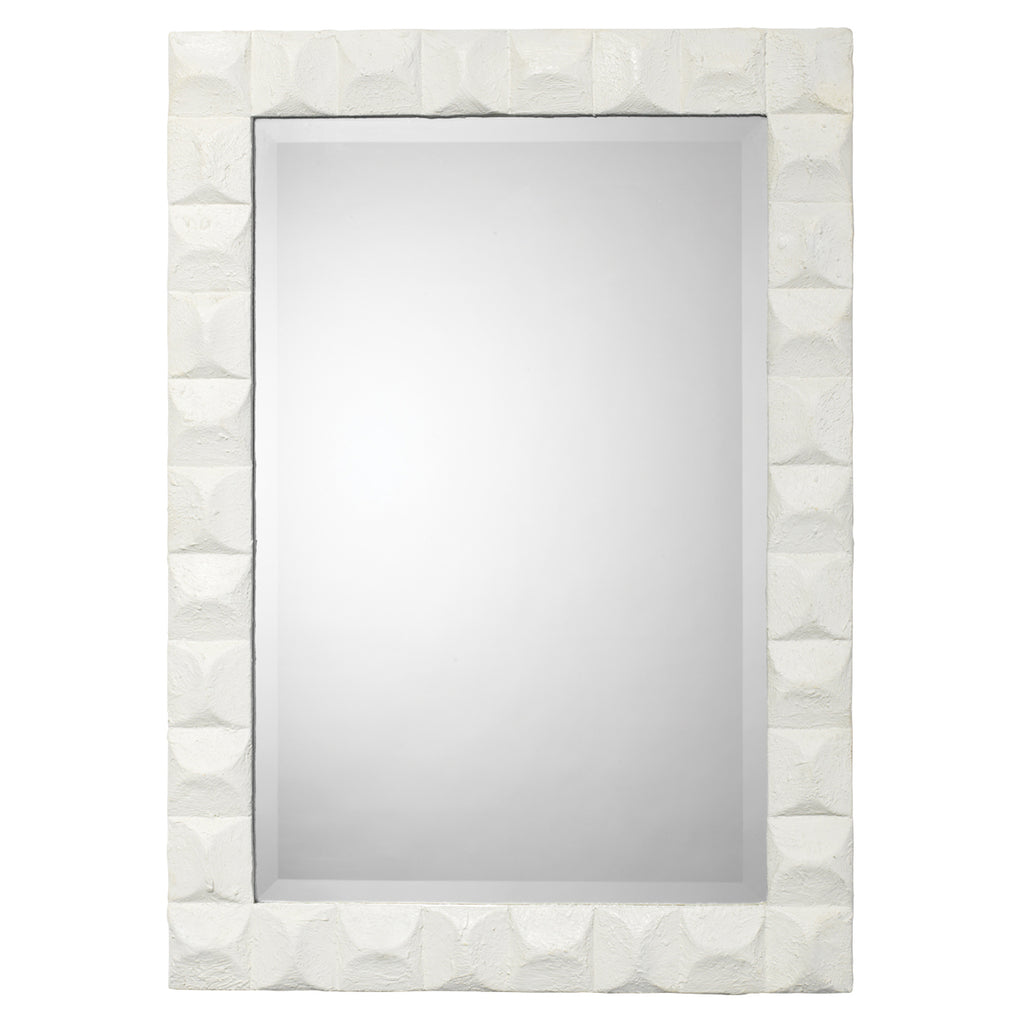 White gesso or plaster is a technique that has been inspired from Plaster of Paris from the early 1900's. The Giacometti brothers were the first to use this technique in the art world. The three dimensional chiseled frame in plaster adds a modern touch to this piece.