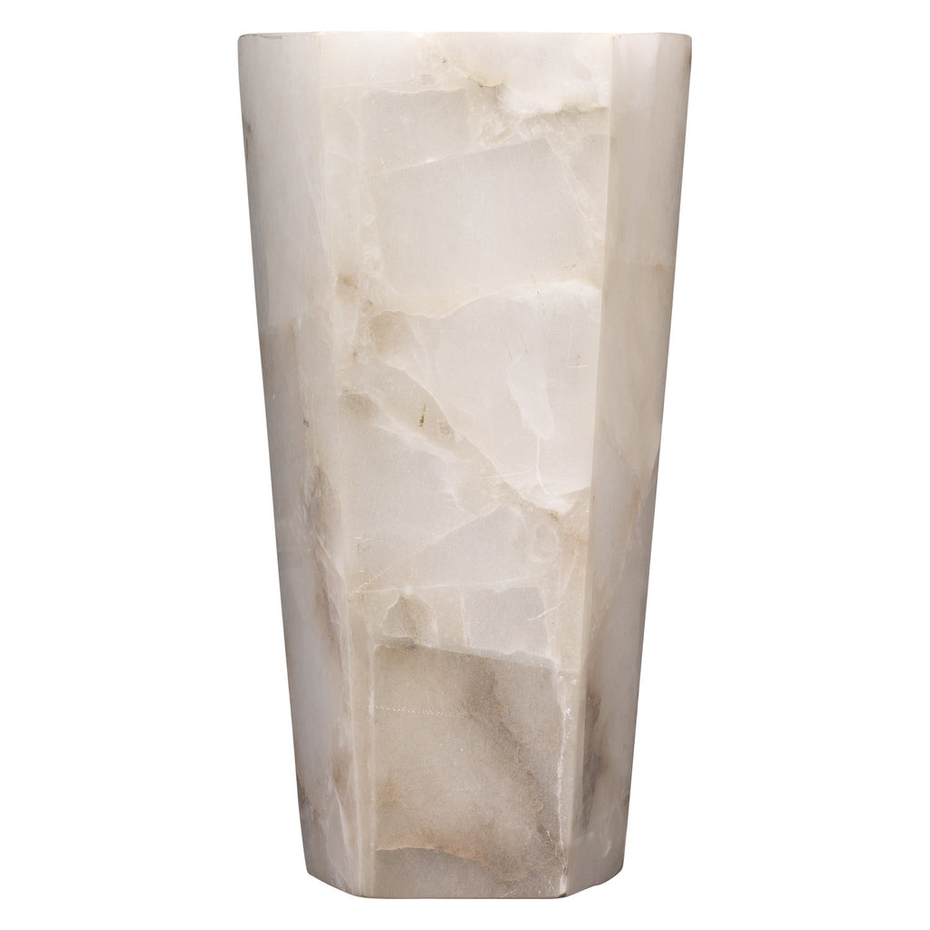 The stunning Jamie Young Borealis Wall Sconce offers beautiful variations in color. The semi-precious gemstone has subtle iridescent tones to add to the beauty of the sconce. This is truly an impressive statement piece embracing gorgeous variation in a unique finish. Alabaster is a natural stone with naturally occurring veining, colors and patterns, each piece is unique.
