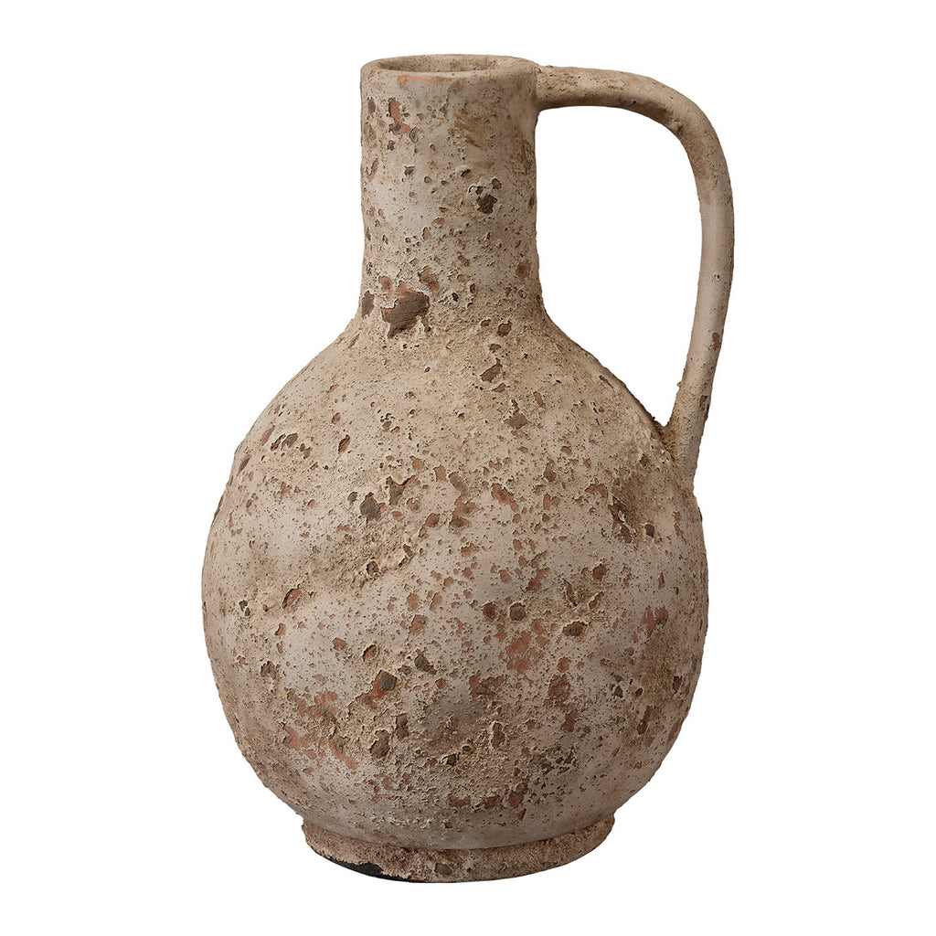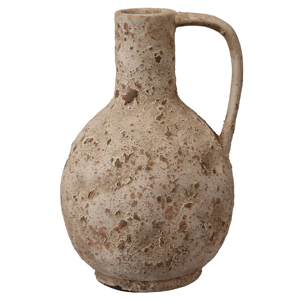 The pitcher silhouette of this decorative vase is traditional, but the handcrafted details give the vase a personality of its own. The hazelnut ceramic is shaped by hand and given a weathered surface effect to create an antique texture and form. Its unrefined shape and earthy color palette will bring a warmth to your existing decor. Each vase is a one-of-a-kind piece of art. As such, their exact shape, color, and finish will vary slightly.
