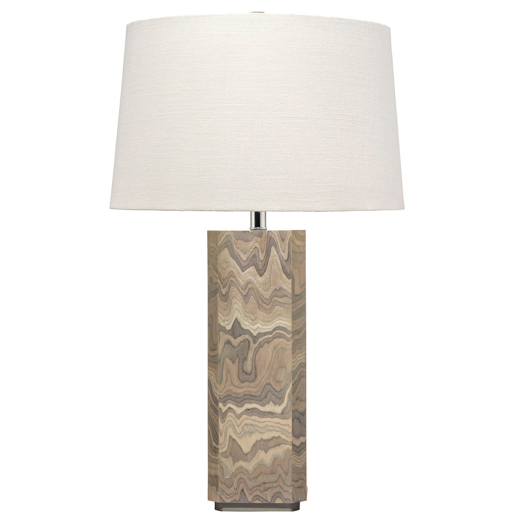 Inspired by the layered strata found inside American canyons, this earthy table lamp features a handcrafted wood veneer base complemented by coordinating nickel hardware. A cloud-like tapered linen drum shade softens and diffuses the light beautifully. The natural palette and versatile proportions make it equally suited for a console, dresser, or side table, providing both functional illumination and an artisanal accent that enhances any space elegantly. Its hand-crafted quality ensures it will be a treasured addition to your home.