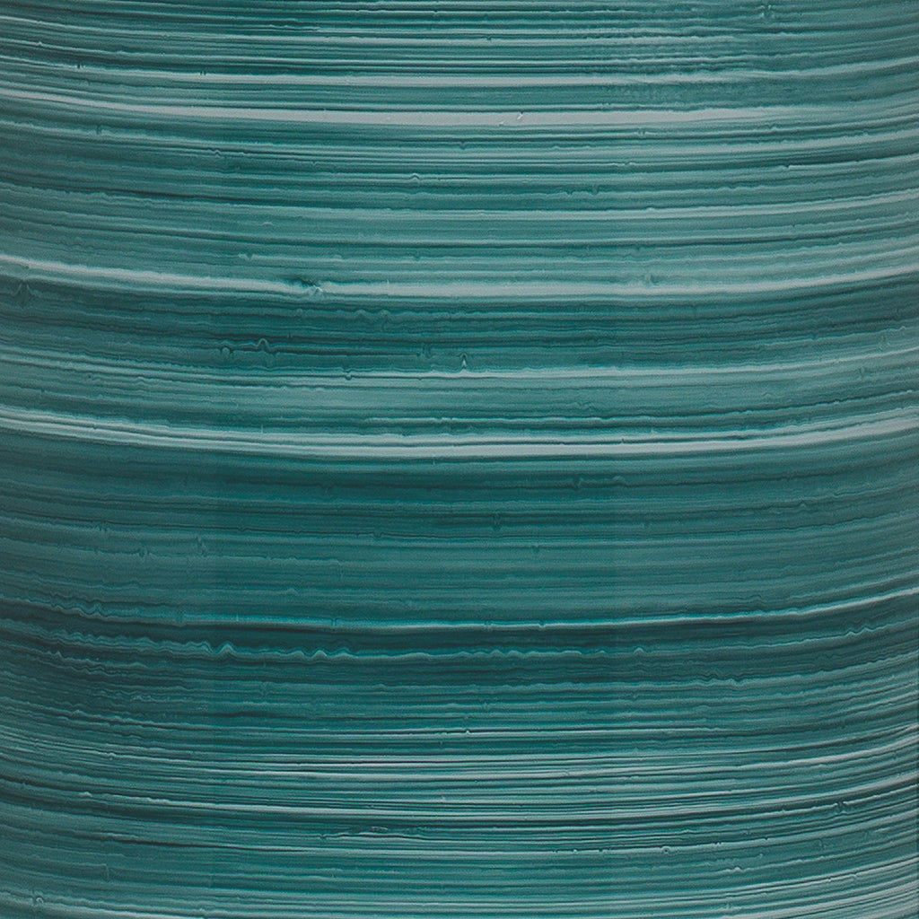 Striated layers of swirling glass, from marine blues to pale sky blues. Artisan mouth blown and crafted on an acrylic base.