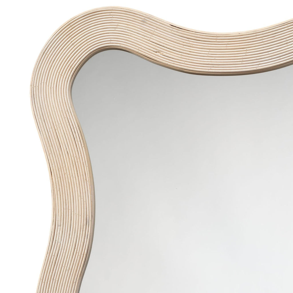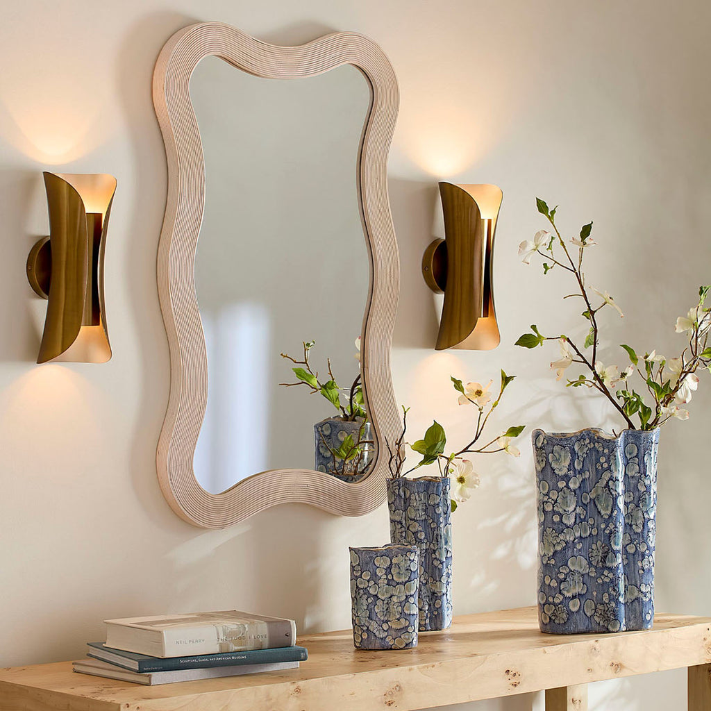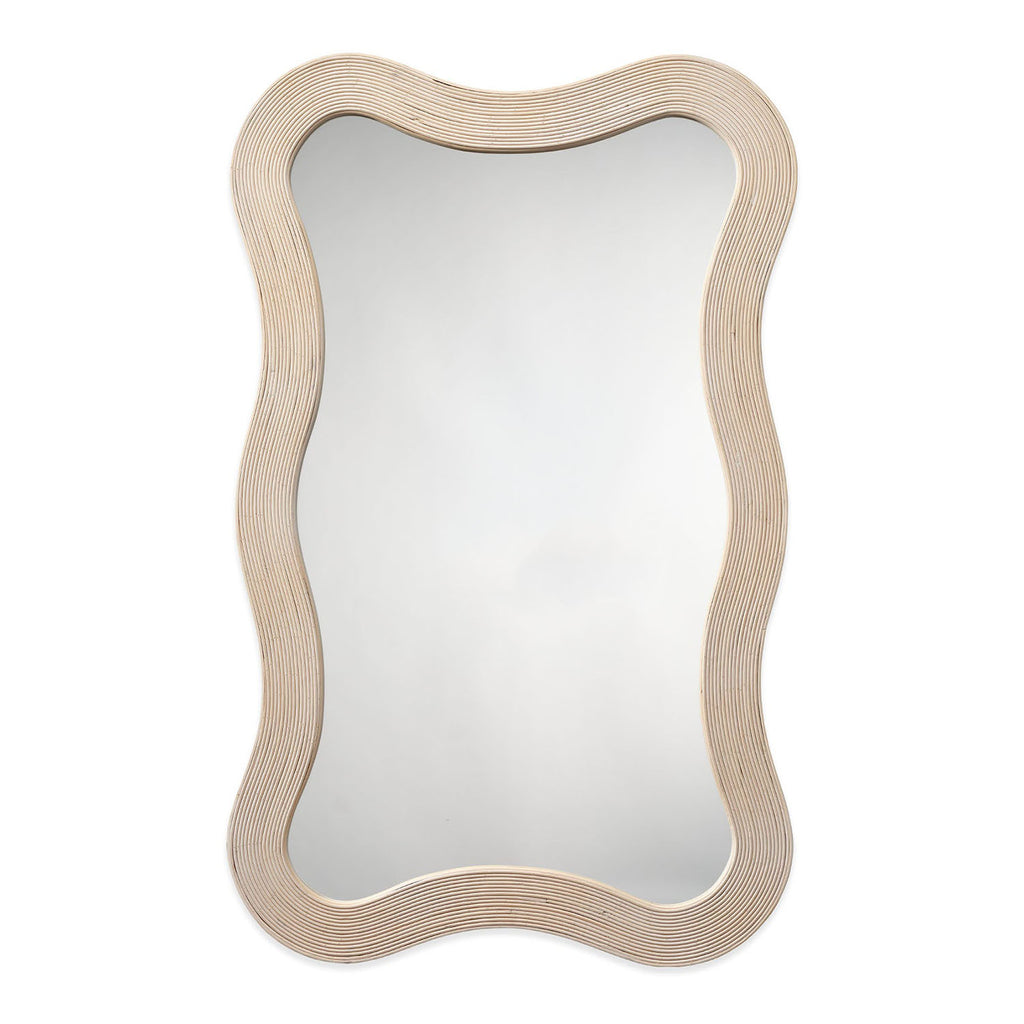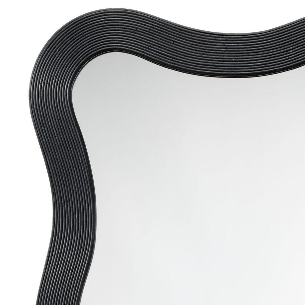 The gently curved lines of this wood mirror are beautifully enhanced by linear textural elements. Artisan-crafted from bamboo, its monochromatic finish adds a touch of drama to any wall display. Place it by the door for a quick fit check on your way out, or in an entryway for a welcoming touch of light.