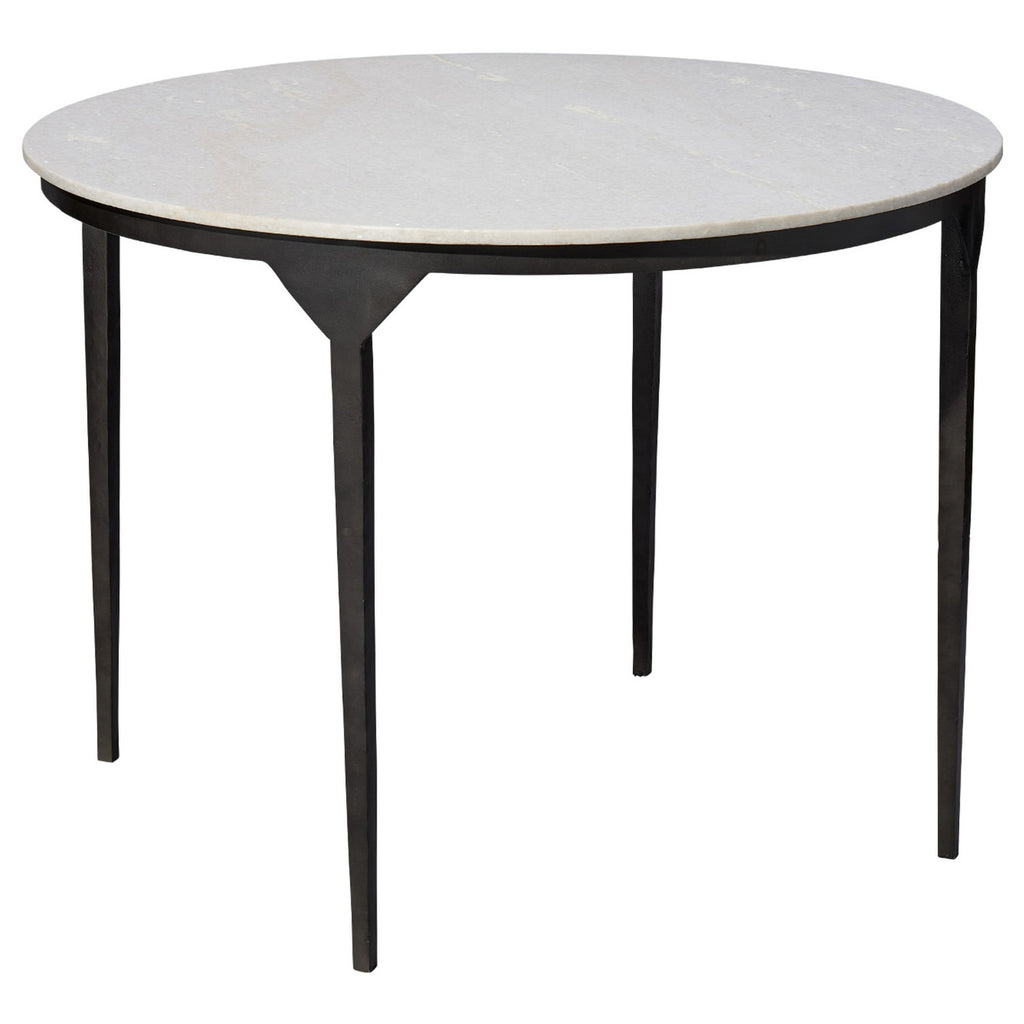 Forged from iron and topped with a circle of pure creamy white marble, this refined dining option is distinguished by the elegance of its lines and skilled of the artisans who craft it. The delicacy of its slim legs belies their strength, and the simplicity of the classic design makes it an easy, instant update for most contemporary decors.