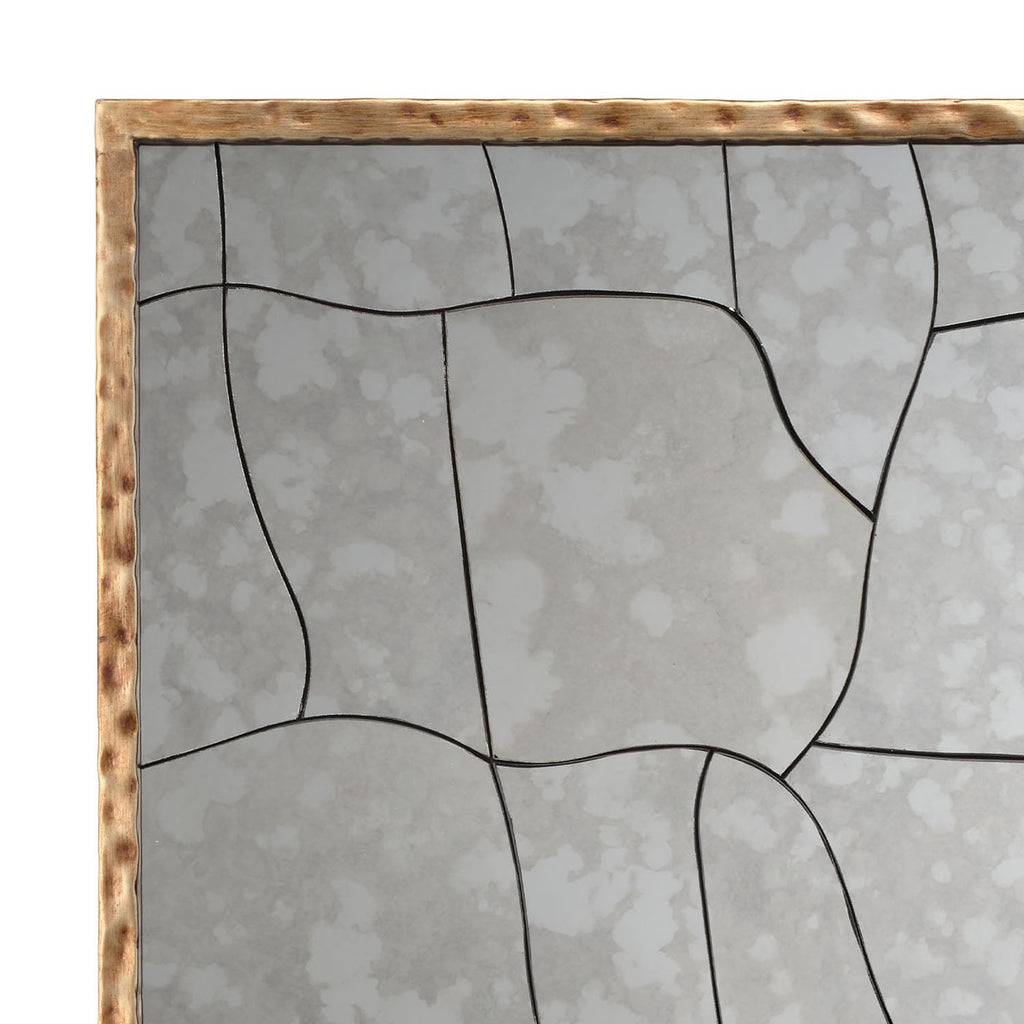 Redefine how you see yourself with this unique wall mirror. The compelling, puzzle-like arrangement of the pieces invites reflection, while the antique glass finish softens your view. Complete with a textured brass frame, this mirror can be placed on a gallery wall to add dimension and light.