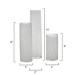 This art glass collection includes three smooth cylinder vases. Each is blown by hand, endowing them with subtle and unique striations and bubbles and enhancing the simple shapes with the organic quality that distinguishes them. Water safe, use with your favorite fresh or faux filler, or simply display.