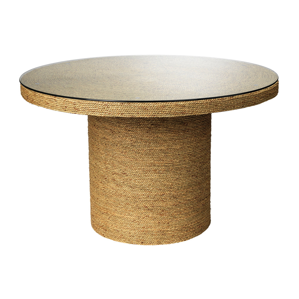 This lovely Jamie Young bistro table will bring a taste of the tropics to interiors anywhere. It’s coastal inspirations were inspired by island paradises; but it is sophisticated enough for any distinguished home from lake house to urban loft! Each table is handcrafted from sustainably harvested seagrass and topped with a strong slab of tempered glass. The intrinsic beauty of the natural material is allowed to take center stage, and flaws in the organic material are not only celebrated but considered an integral part of the design.